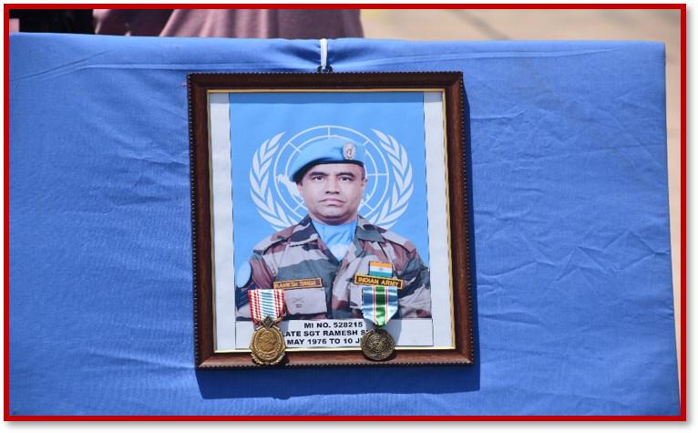 وخلال المراسم تم تقليد الرقيب راميش ميدالية الأمم المتحدة ووسام التقدير العسكري من الدرجة البرونزية من الجيش اللبناني. حضر المراسم كل من سفير الهند الى لبنان الدكتور سهيل أجاز خان، ومن الجيش اللبناني العقيد بيار أبو حيدر وقائد القطاع الشرقي في اليونيفيل العميد رافييل كولومير مارتينيز دل بيرال والعقيد سوريش راوو من الكتيبة الهندية وقد أدى الجميع التحية العسكرية لرفات الرقيب راميش سائلين الله ان يتغمد الفقيد برحمته وان يلهم اهله وذويه والصبر والسلوان.