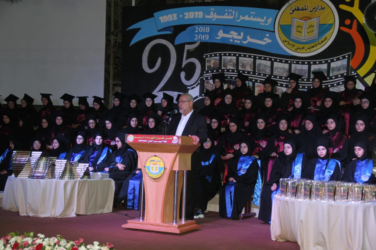بعد دخول موكب الطلاب المكرمين، ثم النشيد الوطني اللبناني ونشيد مدارس المصطفى، ألقى مدير عام التعليم الديني الاسلامي الشيخ علي سنان كلمة بارك فيها لطلاب مدارس المصطفى النبطية ولاساتذة المدرسة النجاح المميز والتفوق الذي احرزه التلامذة في شهادتي الثانوي والمتوسط .