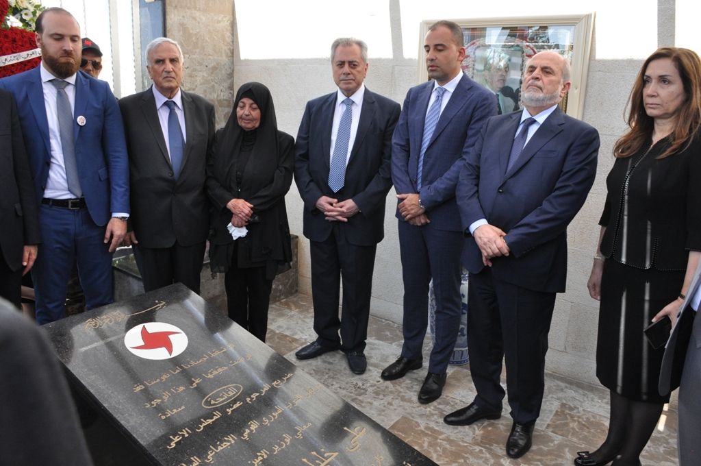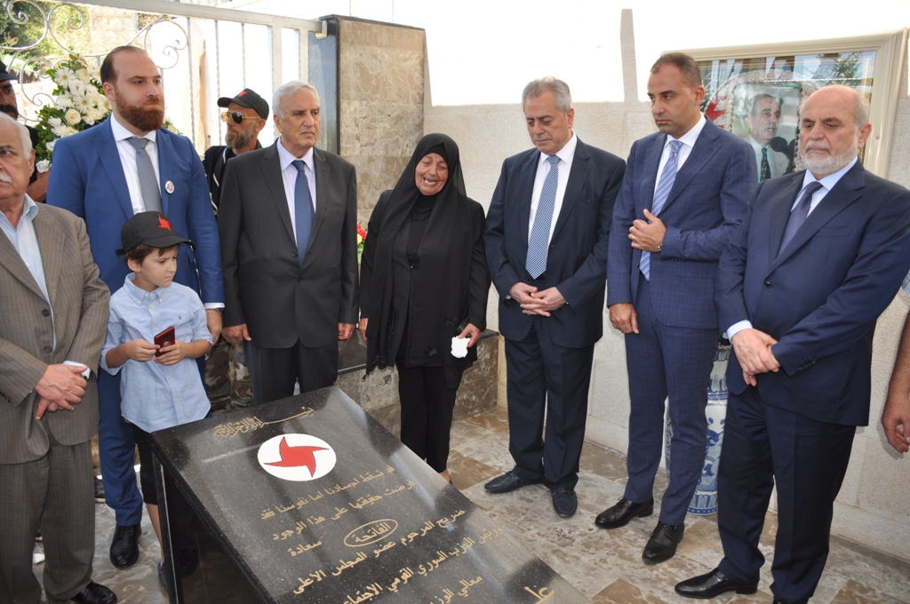 وقال: "قد كان شريكاً مخلصاً وفياً ومؤتمناً على أسرار وعلى وقائع وعلى نضالات وعلى أهداف، وأبو واجب حضوره يتسع بعد عام من غياب جسده، يتسع داخل أسرته ويتسع داخل بلدته ويتسع داخل حزبه وبين رفاقه وأصدقائه وشعبه ونستحضره عند كل ملمة وعند كل مفترق هو إبن حزب مؤسسة ويسرني بكل ثقة ووضوح ودون مجاملة أن أقول الحزب السوري القومي الإجتماعي هو حزب مؤسسة يستطيع أن يدور خلافاته وأن يحيك من تصورات التي تنتاب أعضائه وقياداته، يحيك مشهداً جميلاً يعبر عن وحدة في المنطلق والهدف والرؤية فالتنافس مشروع لكن ليس على حساب العقيدة ولا على حساب الأهداف، حبذا لو يكون لنا في هذا البلد مجلس وزراء يمثل مؤسسة تتمثل مؤسسة الحزب السوري القومي الإجتماعي ولا تتعطل جلساته عند كل حادث او عند كل مشكلة او كل ملمة تصيب البلد برمته وتهدد سلمه الأهلي وتعكر صفو إستقراره الداخلي وتهدد وحدة بنيانه وبنيته، حبذا لو يكون لدينا في هذا البلد مجلس وزراء يمثل مؤسسة حقيقية تستطيع ان تتجاوز التنافسات والنزاعات وتحيك مشهداً وطنياً جميلاً للبلد ولأهله ولكل أجهزته وإداراته".
