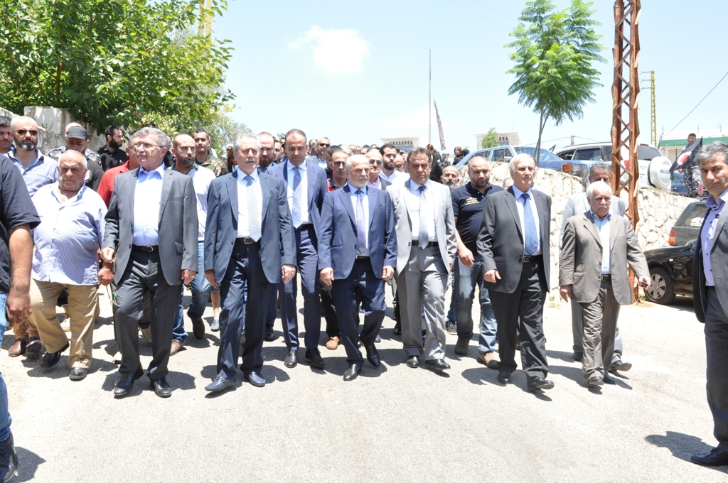 وقال:"ما كان بالعزيز الراحل هو وحدة الهدف والاتجاه وصدقية الإلتزام بالهدف وبالإتجاه. قيل له في سهرة قروية كما تناهى الى سمعي، لما تنحاز الى المقاومة يا أبا واجب، قال لأن المقاومة تشبعنا عزة وكرامة. وهذا الموقف هو ما نحتاج اليه في هذا البلد الذي يتهدده الخطر الوجودي من عدو صهيوني شرس مدعوم من قوى دولية إستكبارية نافذة ومن قوى إقليمية ترتضي ان تكون أدوات في خدمة المشروع الإستكباري للتسلط والهيمنة على منطقتنا. والمقاومة هي الخيار الذي إرتضاه وعاش من أجله وسَعُد للتضحية من أجل تحقيق أهدافه المشروعة، كما أننا نواجه عدواً تكفيرياً أراد أن يمزق بنيان وطننا وأن يمزق سوريا لكن عزاء اليوم برحيله يا أبا واجب أن سوريا خرجت من محنتها اليوم قوية موحدة معافاة ممتدة وموغلة شرقاً ونافذة ومؤثرة في المعادلة الإقليمية والدولية، سوريا التي ناضلت معها ومن أجل حمايتها، سوريا اليوم هي ظهير المقاومين وظهير المجاهدين والقوة المتبقية والرصيد المتبقي لنا من أجل إستعادة فلسطين كل فلسطين".