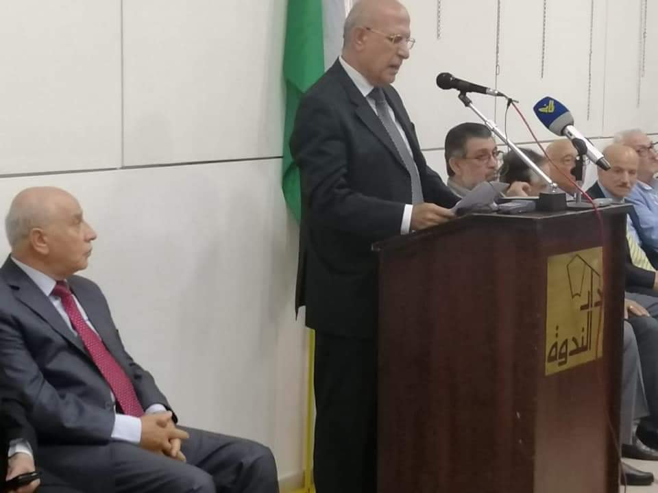 ثم تحدث الدكتور صلاح الدين الدباغ رئيس اللجنة التنفيذية للمنتدى القومي العربي فبعد ان تحدث بان ما يجمع بينهم هو محورية قضية فلسطين وتحريرها بترابها الكامل، وبأننا نحن العرب امة واحدة لاننا نؤمن بأن هذا الانتماء القومي والحضاري في آن معا. هو الجامع لنا جميعاً، وهو المانع من تقسيمنا الى دويلات تسعى الى الحماية الاجنبية والى طوائف ومذاهب وشيع تؤدي بنا الى التمزق والتشتت.