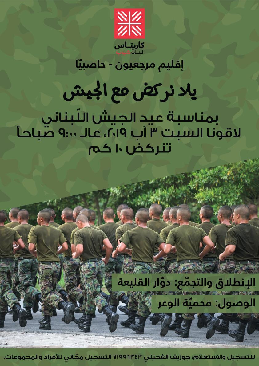 بمناسة عيد الجيش اللبناني، تنظم كاريتاس لبنان، أقليم حاصبيا - مرجعيون، يوم غد السبت "ماراتون رياضي" (ركض 10 كلم) في القليعة تحت شعار:
