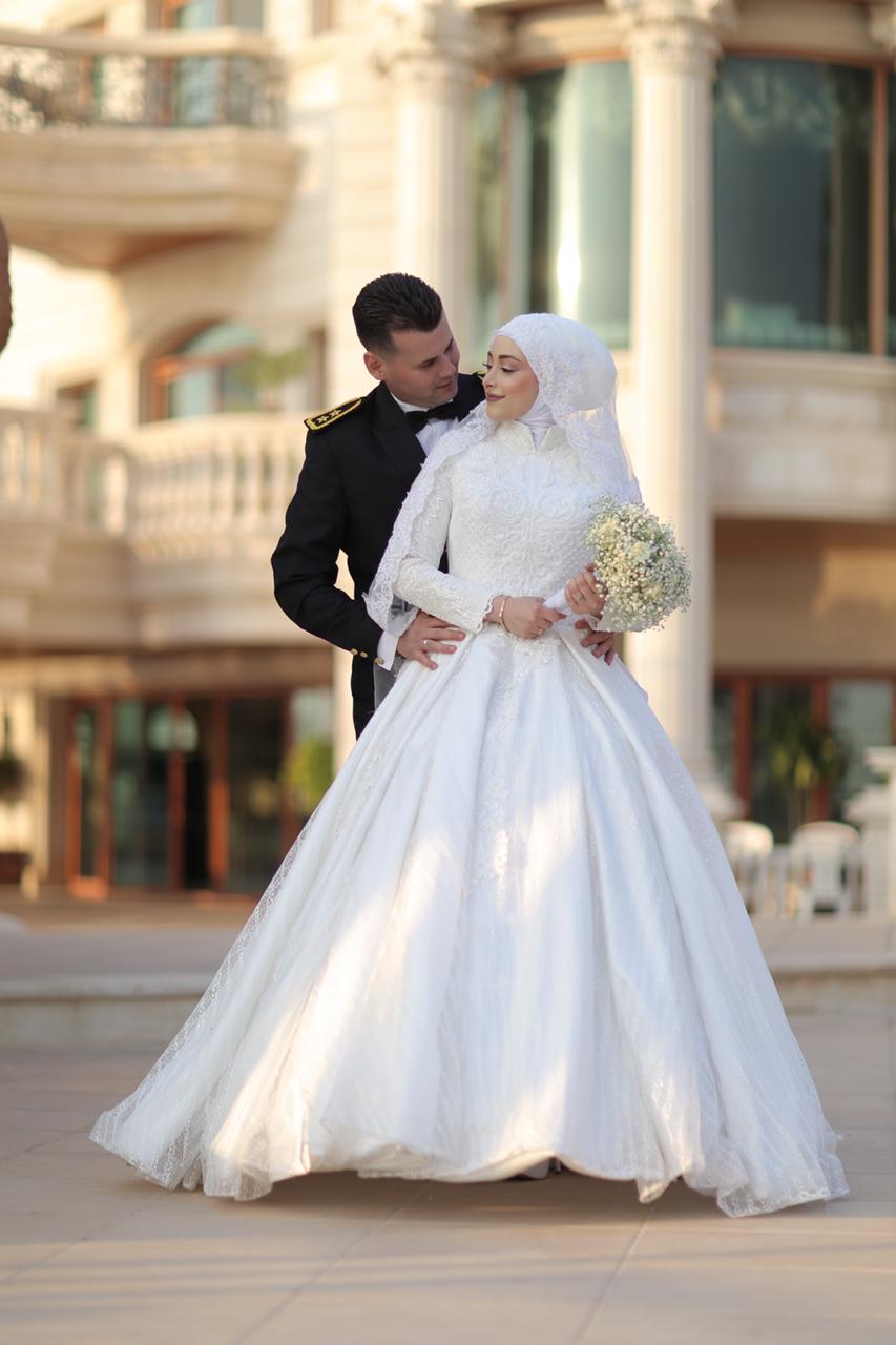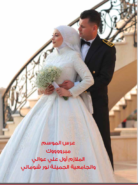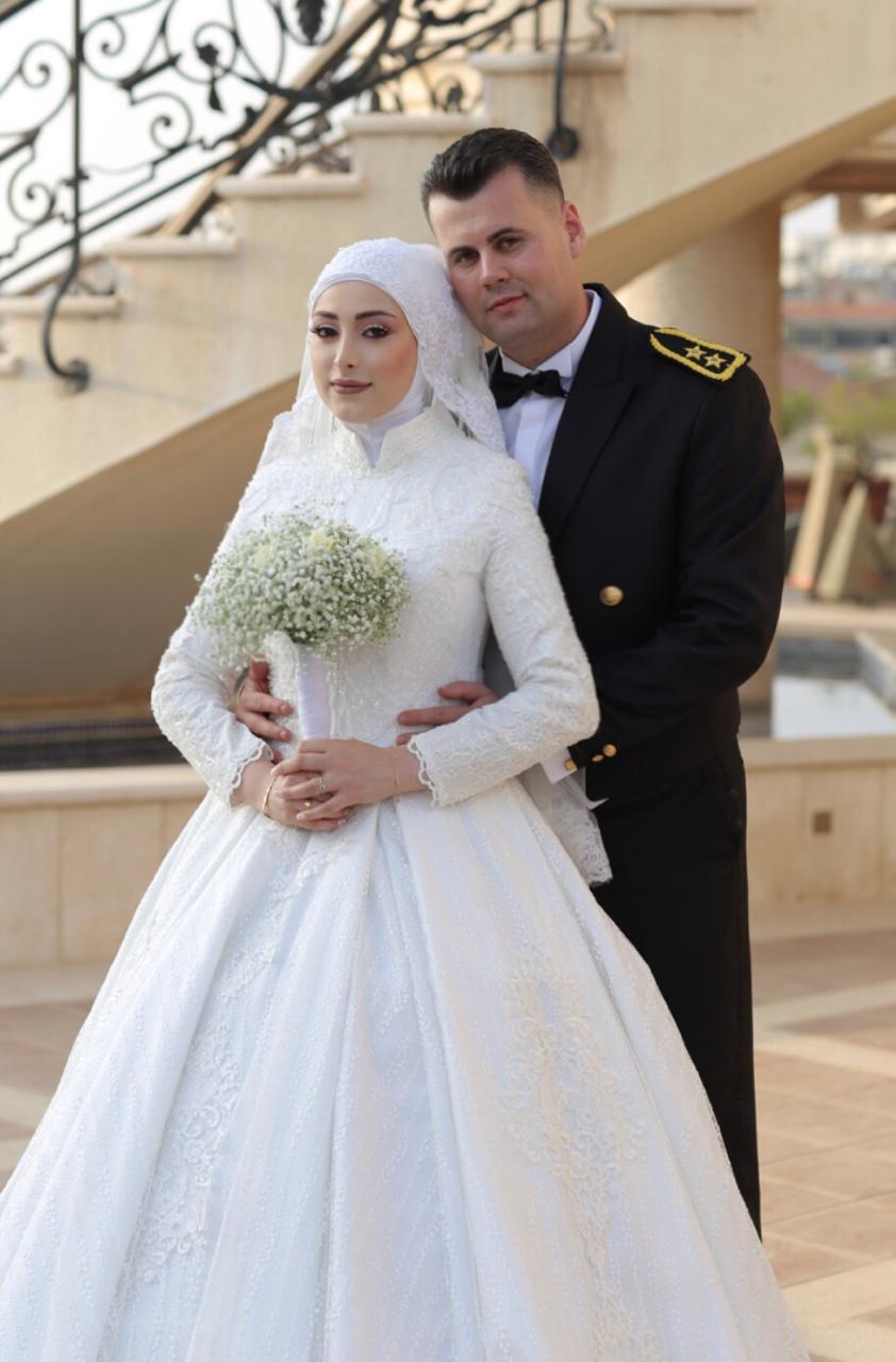العروسان السعيدان الملازم أول علي عوالي والجامعية نور شومالي