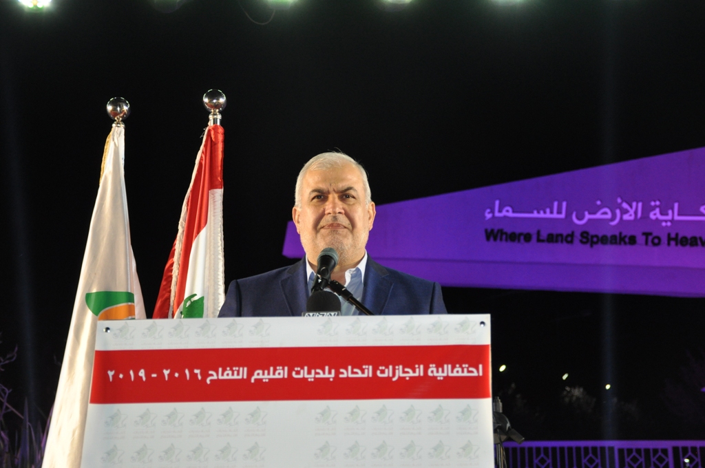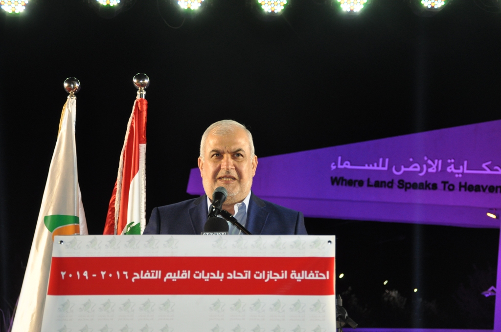 اضاف: "نقف بينكم اليوم، لنقدم إليكم أنا واخوتي في اتحاد بلديات إقليم التفاح بكل خجل، بعضا مما يستحقه أهلنا الأعزاء على قلوبنا، بعض وفاء، لقد اهتم الاتحاد في النصف الأول من ولايته بالمدارس الرسمية، بناء وترميما وتجهيزا ونشاطات، إيمانا منا بأن النهوض الحقيقي بمجتمعنا لا يكون إلا على أسس علمية سليمة، وكلما انتشر نور العلم، انحسرت ظلمات التكفير وحروب الجاهلية، لنبني ونحمي بسواعد أبنائنا وعقولهم وقدراتهم التي لا حدود لها، وها نحن نراهم وهم في ريعان الشباب شهداء وأبرار لا يبخلون لا بدم ولا بعلم في مسيرة المقاومة والتنمية، من أجل لبنان كل لبنان، وتحولت مراكز التدريب المستمر التي أنشأناها إلى خلية نحل لا تهدأ لإكساب الأجيال مهارات متقدمة سواء في التقنيات الحديثة أو إدارة المشاريع أو الرياضة والسياحة والزراعة، ولم ننس كبار السن لنرد لهم بعض جميلهم علينا من مبادرات الرعاية والعناية".