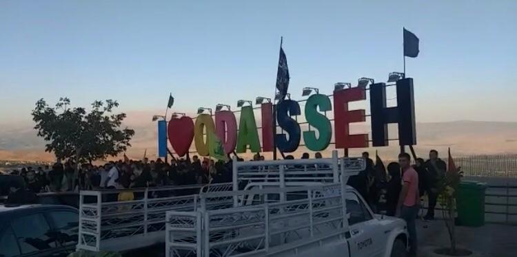وصل الى نقطة البانوراما في بلدة عديسة - قضاء مرجعيون عند الحدود اللبنانية الفلسطنية المحتلة، وبدعوة من ثورة المختار الثقافي في منطقة النبطية وضواحيها، موكب سيار يضم حوالي 120 سيارة ودراجة نارية، قادم من منطقة النبطية، رافعين الأعلام الحزبية والرايات العاشورائية، حيث وقفوا وقفة تضامنية وذلك تأييدا لدعم المقاومة الإسلامية بعد عملية الشهيدين حسن زبيب وياسر ضاهر، في مارون الراس يوم امس، ورددوا الهتافات عبر مكبرات الصوت دعماً لمواقف السيد حسن نصر الله والتمسك بالأرض والصمود في وجه العدوان الإسرائيلي، في ظل غياب تام لقوات العدو الإسرائيلي في الجهة المقابلة للحدود.