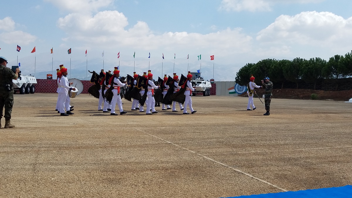 بدأ العرض العسكري بدخول الوحدات ساحة العرض والذي أعقبه حرس الشرف وتفقد العرض من قبل ضيف الشرف. بعد ذلك، تم منح جنود الكتيبة الهندية وأفراد الوحدة الكازاخستانية ميداليات السلام من قبل قائد القطاع الشرقي في اليونيفيل، وأكمل تقليد الاوسمة عدد من الشخصيات المدنية والعسكرية اللبنانية. تلا ذلك عرض ثقافي راقص رائع من الهند، وأداء متألّق للفرقة الموسيقية في الكتيبة الهندية التي أسرت الجمهور بألحان عسكرية مشهورة وحركات رشيقة متزامنة وأيضاً أداء أغنية وطنية من قبل عناصر من الوحدة الكازاخستانية والتي تشارك للمرة الأولى في مهمات حفظ السلام.