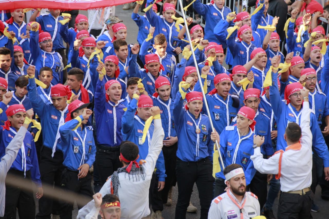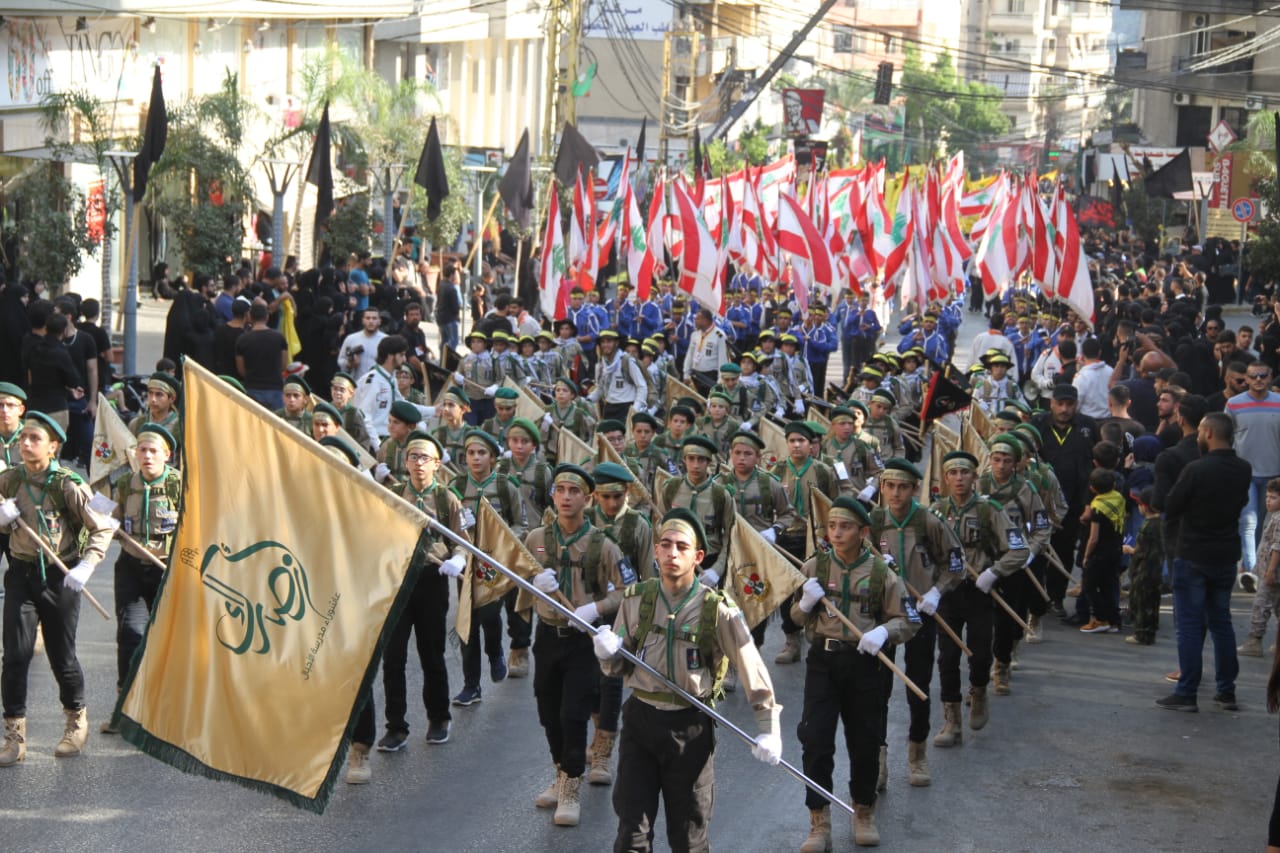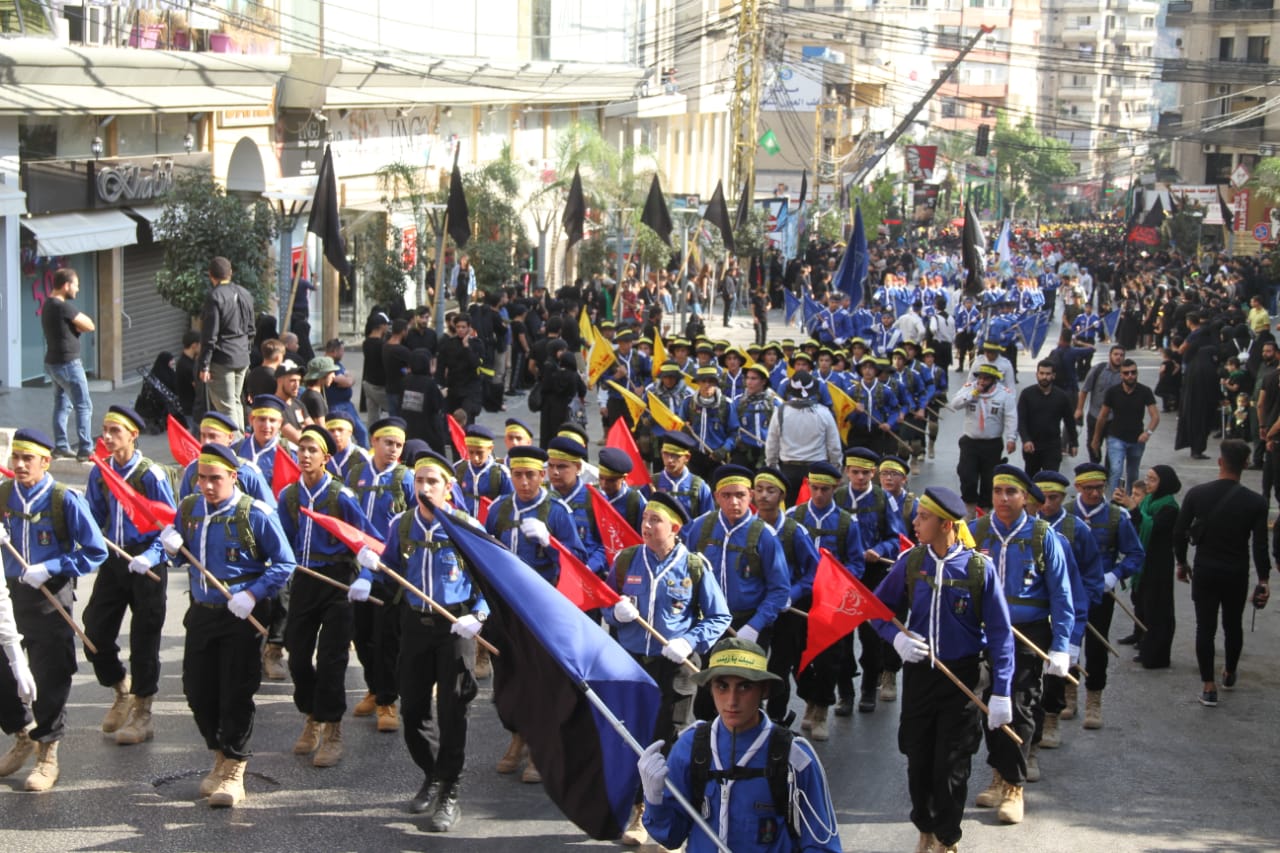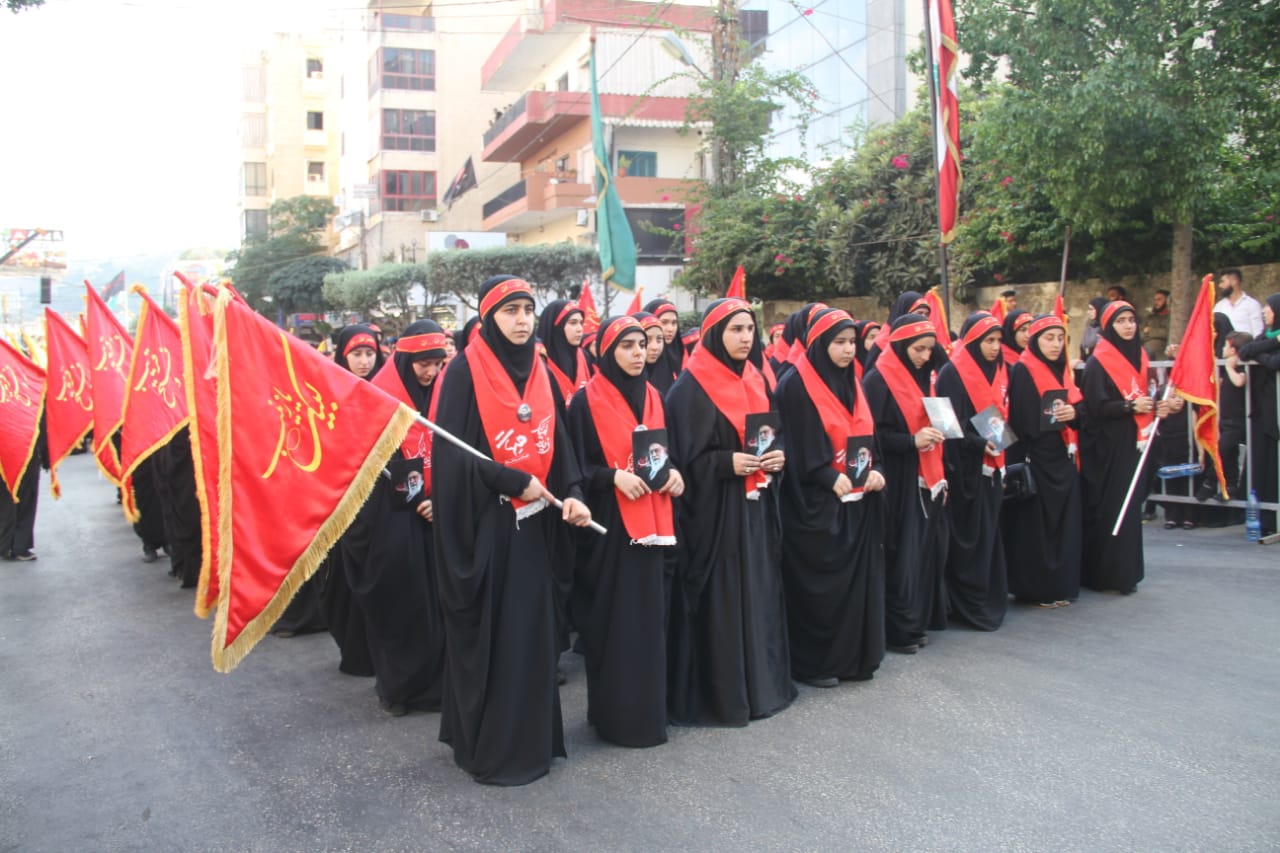 وانطلقت المسيرة من ساحة عاشوراء ، وسط مدينة النبطية ، تتقدمها الفرقة الموسيقية المركزية التابعة لكشافة الامام المهدي، وحملة الاعلام اللبنانية والفلسطينية ورايات "حزب الله" ورايات سوداء وخضراء كتب عليها " ياحسين "، وسار خلفهم عشرات من فرق الفتية في كشافة الامام المهدي الذين رفعوا أعلاما كشفية ورايات حسينية، إضافة الى صور للامام الراحل روح الله الخميني , و للامام السيد علي الخامنئي وللسيد موسى الصدر وللأمين العام ل"حزب الله" السيد حسن نصرالله وصور لشهداء وقادة في المقاومة الاسلامية.