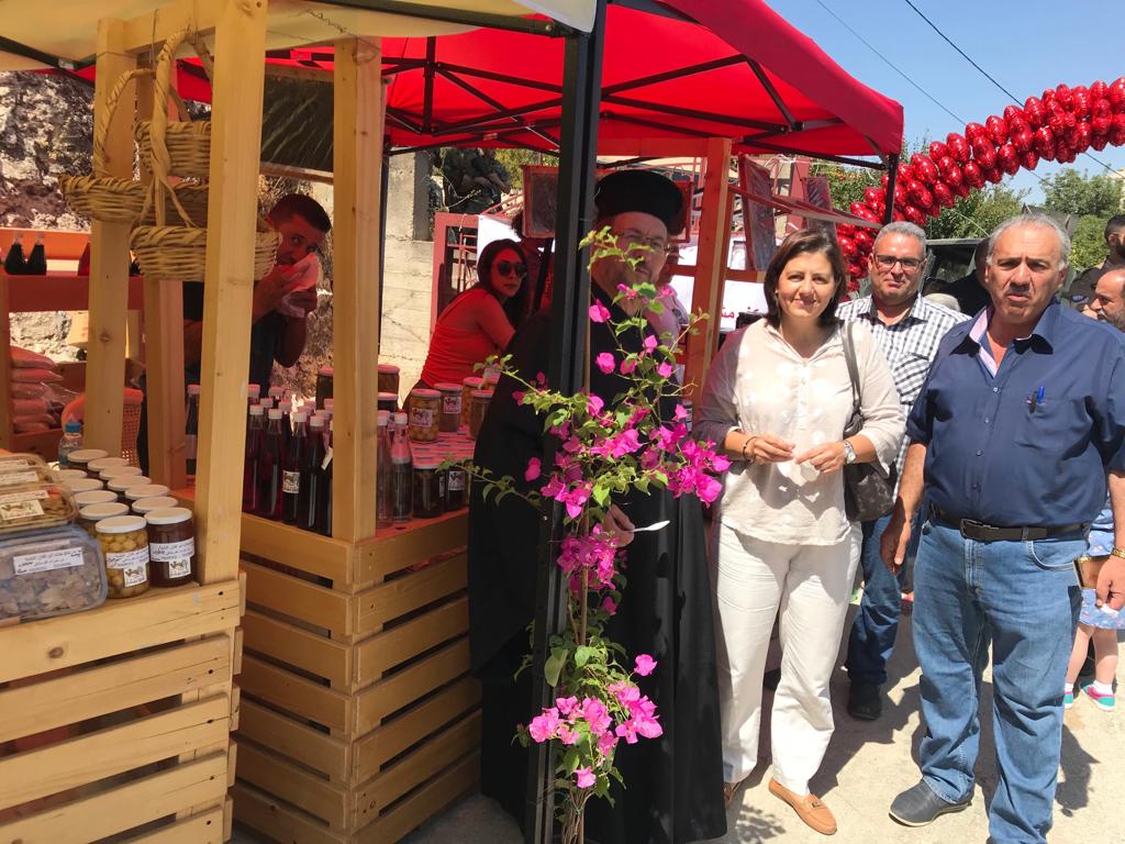 وقد جالت السيدة أبو زيد برفقة رئيس البلدية على أجنحة المعرض مثنية ومعبرة عن سعادتها لهذه المشهدية ورمزيتها من خلال الجمع والإنتاج الطبيعي للعديد من الأصناف والمواد والمأكولات البلدية، وبالتالي تعلق الأهالي بأرضهم منوهة بهم وعطاءاتهم مؤكدة على أن الوزارة تقف إلى جانبهم داعمة لكل عمل أو مطلب.