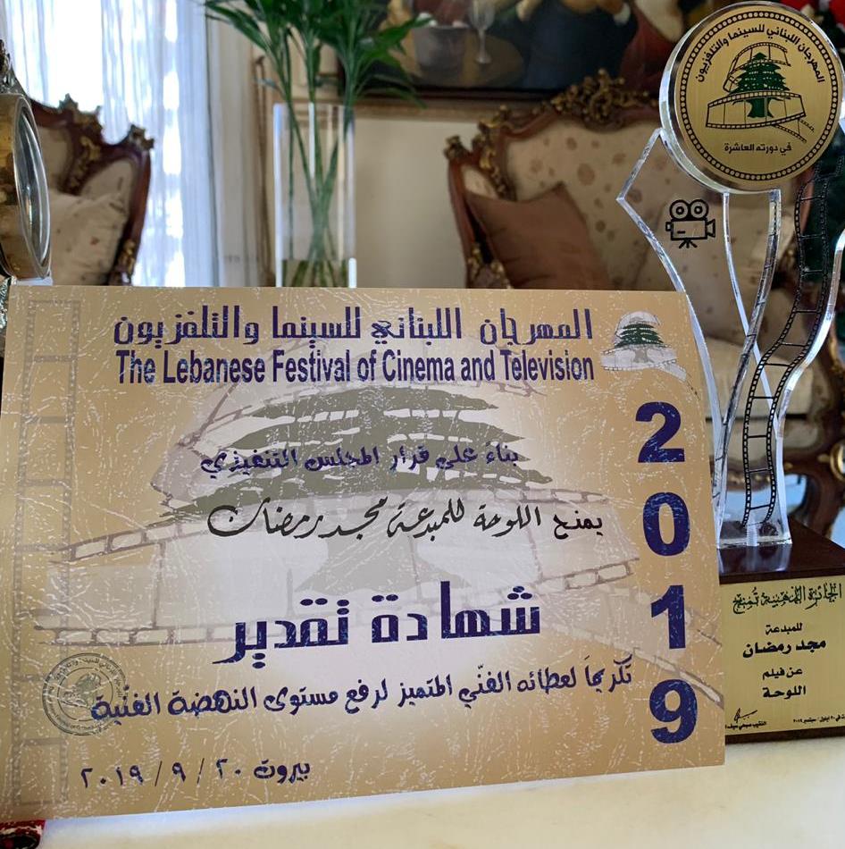 فازت الفنانة التشكيلية مجد رمضان بجائزة عن فيلمها الذي حمل عنوان “اللوحة” في المهرجان اللبناني للسينما والتلفزيون في دورته العاشرة الذي نظمته نقابة الفنيين و السينمائين في لبنان في مطعم ناي خلدة بحضور نخبة من نجوم السينما والتلفزيون في لبنان والعالم العربي .