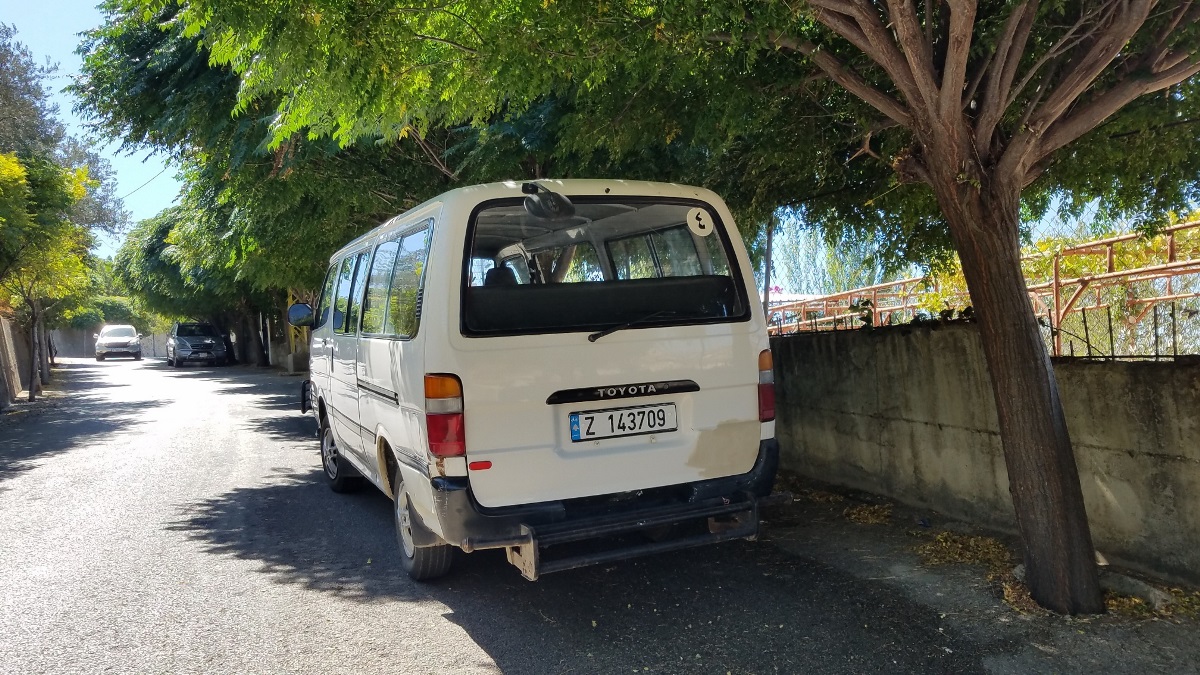 معروض للبيع في الخيام سيارة فان تويوتا هايس موديل 1995 بحالة جيدة، تتسع لـ 14 راكب.
