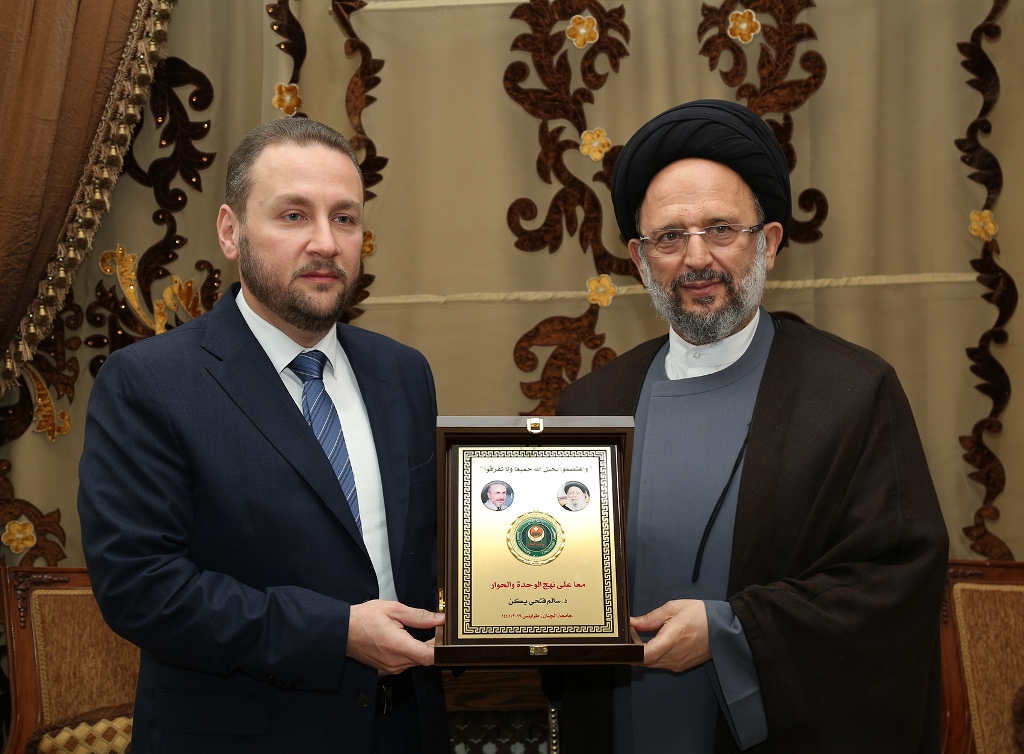 وجرى خلال اللقاء البحث في آفاق التعاون الأكاديمي والتربوي بين الجامعة وجمعية المبرات الخيرية بمؤسساتها التربوية والتعليمية والرعائية، كما تطرق البحث إلى مسيرة العلامة المرجع السيد محمد حسين فضل الله والداعية فتحي يكن والعلاقات التي جمعت بينهما لتجسيد الوحدة الإسلامية وحماية الخط الوحدوي ومسيرة الوعي والانفتاح على المستوى الإسلامي العام واللبناني الخاص.
