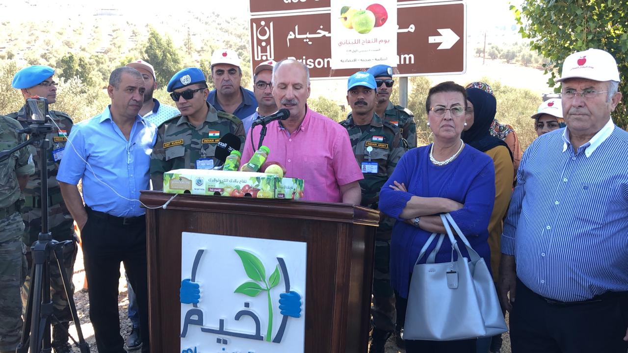 واضاف: "دعم الزراعة في هذه المناطق يشكل حجر الاساس في تأمين فرص العمل لاهل المنطقة. واحدى فروع هذه الزراعة هي زراعة التفاح الذي نحتفل به اليوم، حيث اطلقنا شعار "تفاح بلدك الك ولاولادك". والهدف من هذا اليوم الوطني هو تسويق التفاح اللبناني في الاسواق المحلية والخارجية وحث اللبنانيين في الداخل والخارج على شراء التفاح اللبناني من اجل دعم المزارع اللبناني في تسويق وتصريف انتاجه".