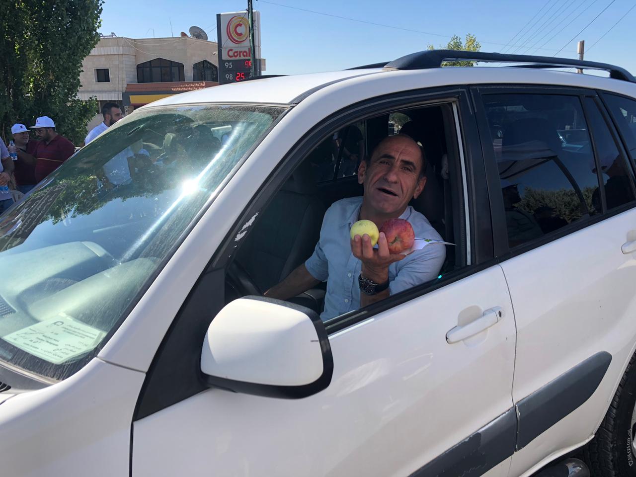 كما، تم توزيع عصير التفاح الطازج مجانا على المارة، بمبادرة فردية من رجل الاعمال طه قبلان.