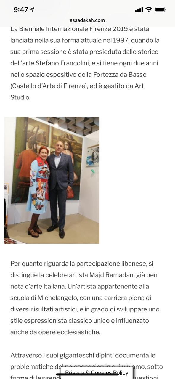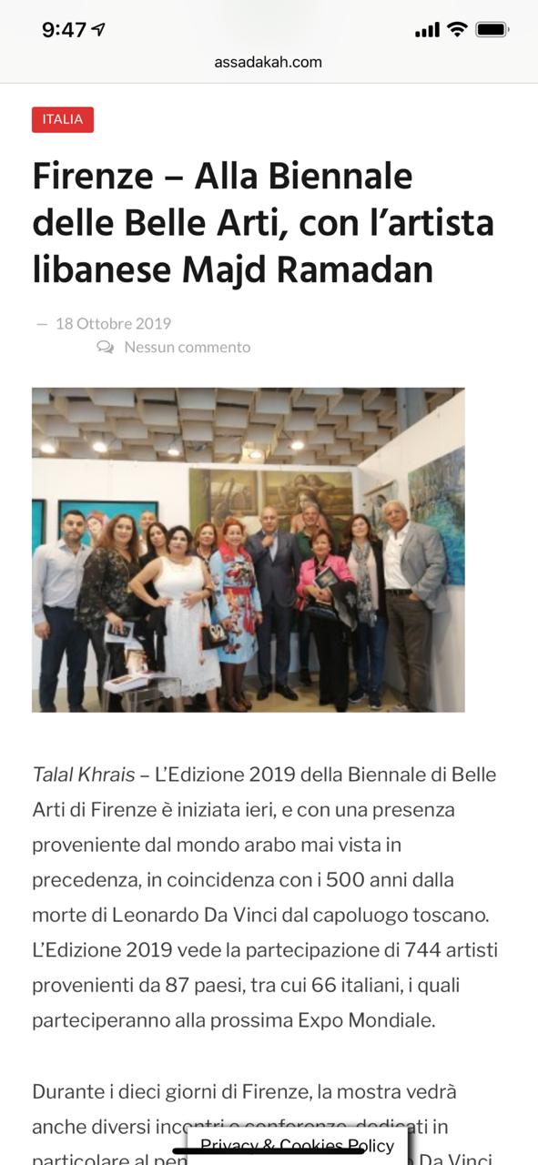 تستمر فعاليات معرض “بينالي فلورنسا” للفنون التشكيلية منذ ثمانية أيام وحتى الثامن والعشرين من الشهر الحالي في مدينة فلورنسا الإيطالية، بالتزامن مع مرور 500 سنة على رحيل لينوردو دافينتشي، في حضور عالمي وعربي غير مسبوق. ومثل لبنان القنصل الفخري شربل شبيل وافراد من الجالية في فلورنسا.