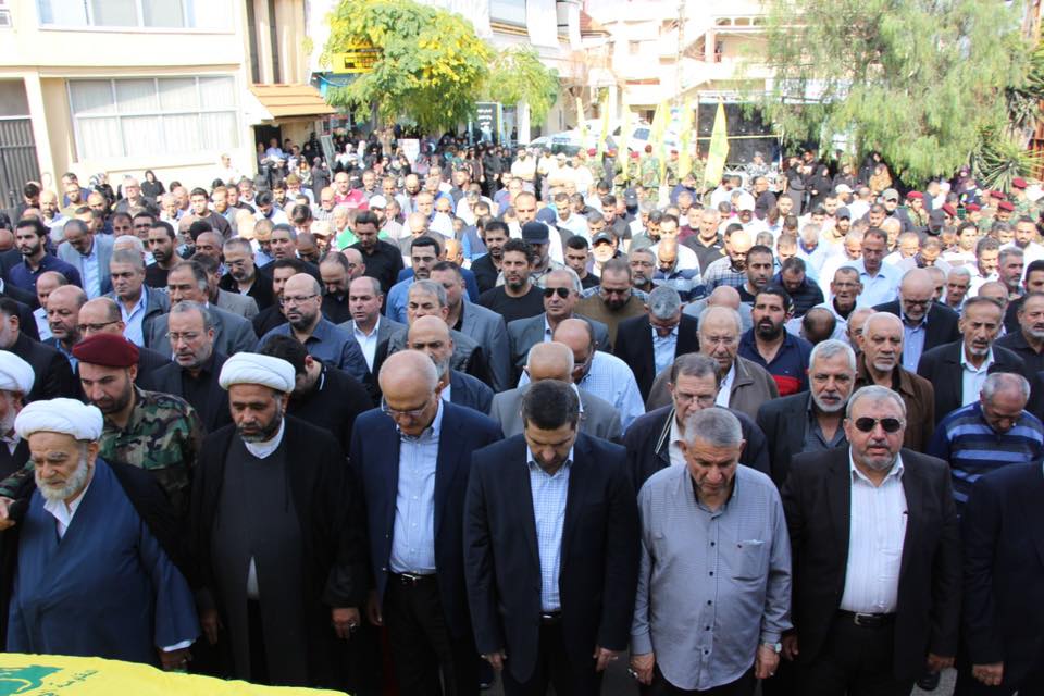 وانطلقت مراسم التشيع من امام حسينية البلدة بمسيرة حاشدة حيث سجي نعش الفقيد، يحيط به رجال المقاومة الاسلامية وقد جال الموكب شوارع البلدة يتقدمه حملة الرايات و الفرق الكشفية على وقع الهتافات الحسينية.