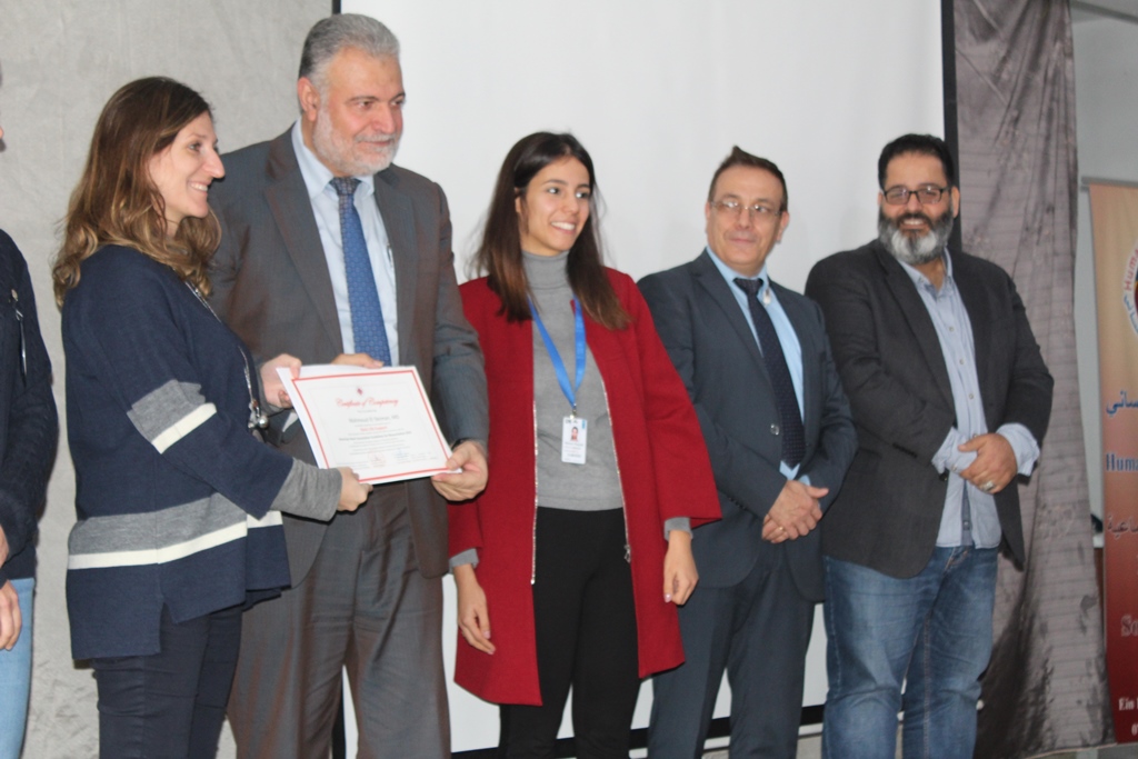تخلل الإحتفال كلمات للصليب الأحمر الدولي، برنامج الأمم المتحدة الإنمائي (UNDP)، الخريجين وكلمة لجمعية النداء الإنساني.