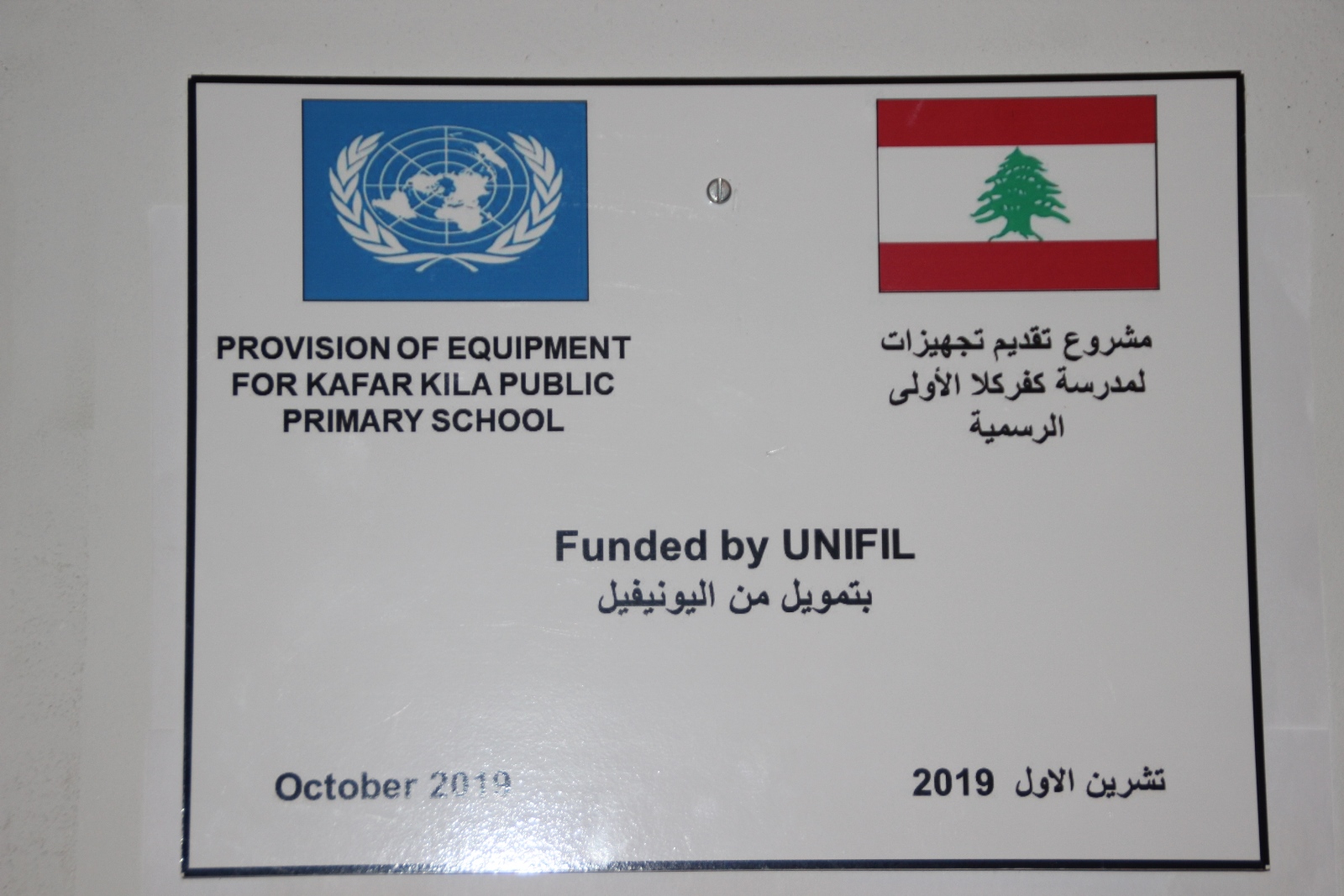خلال السنة الماضية, وافقت قوات اليونيفيل على تنفيذ مشروع تطوير البنية التحتية بقيمة 8900 دولار أمريكي لشراء الأثاث والمعدات لمدرسة كفركلا الرسمية, و من المتوقع أن يستفيد حوالي 195 طالبًا في المدرسة من هذا المشروع.