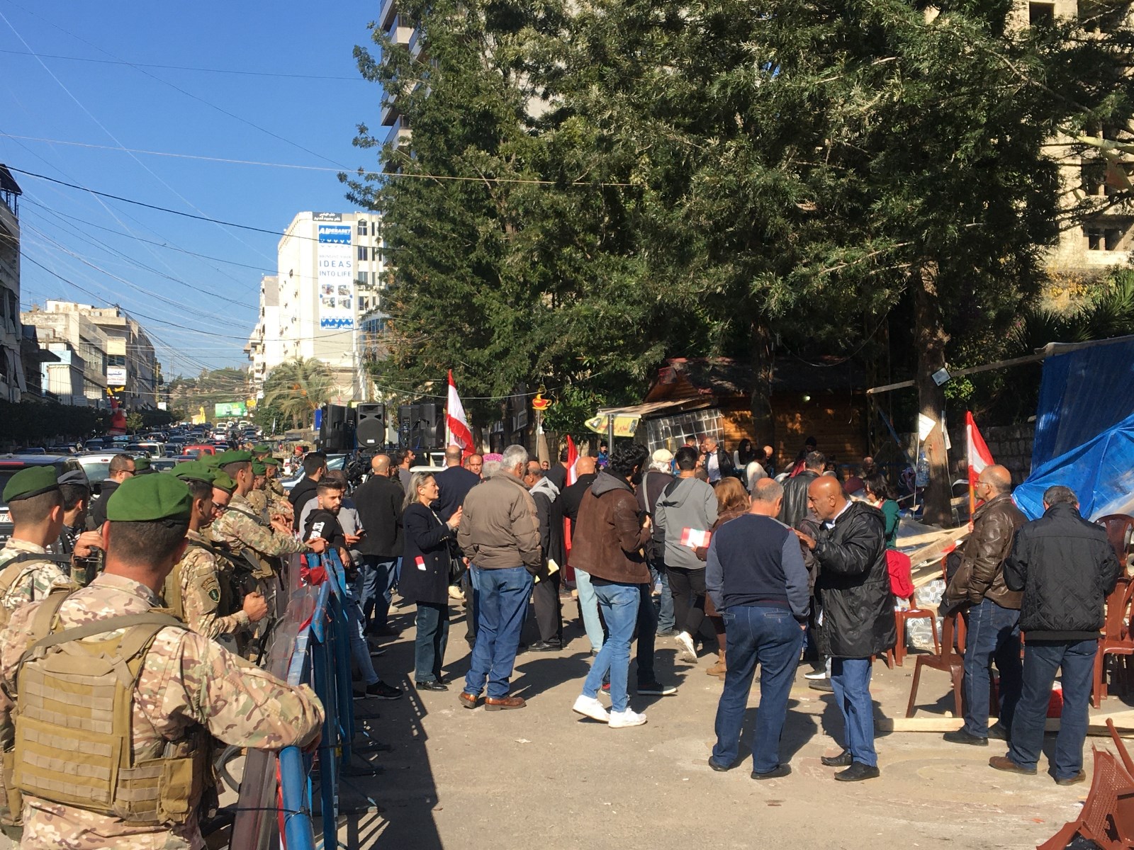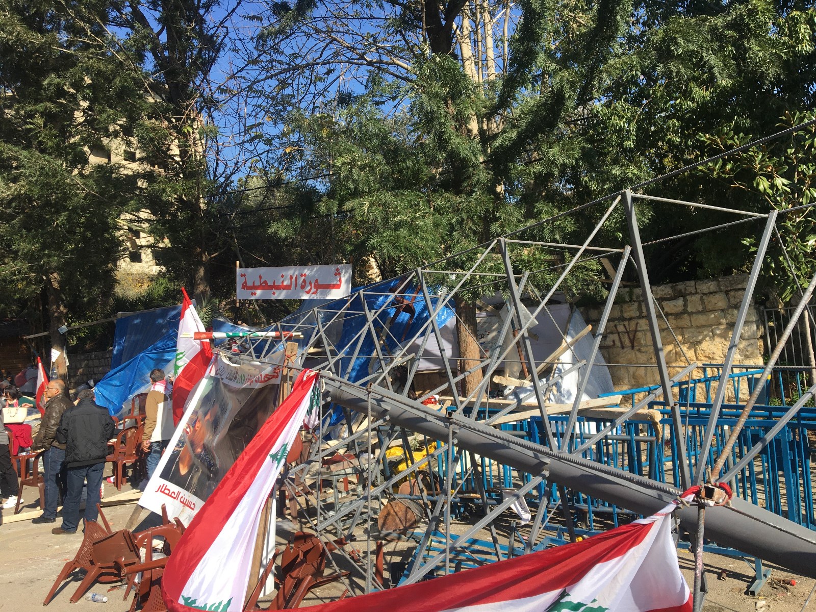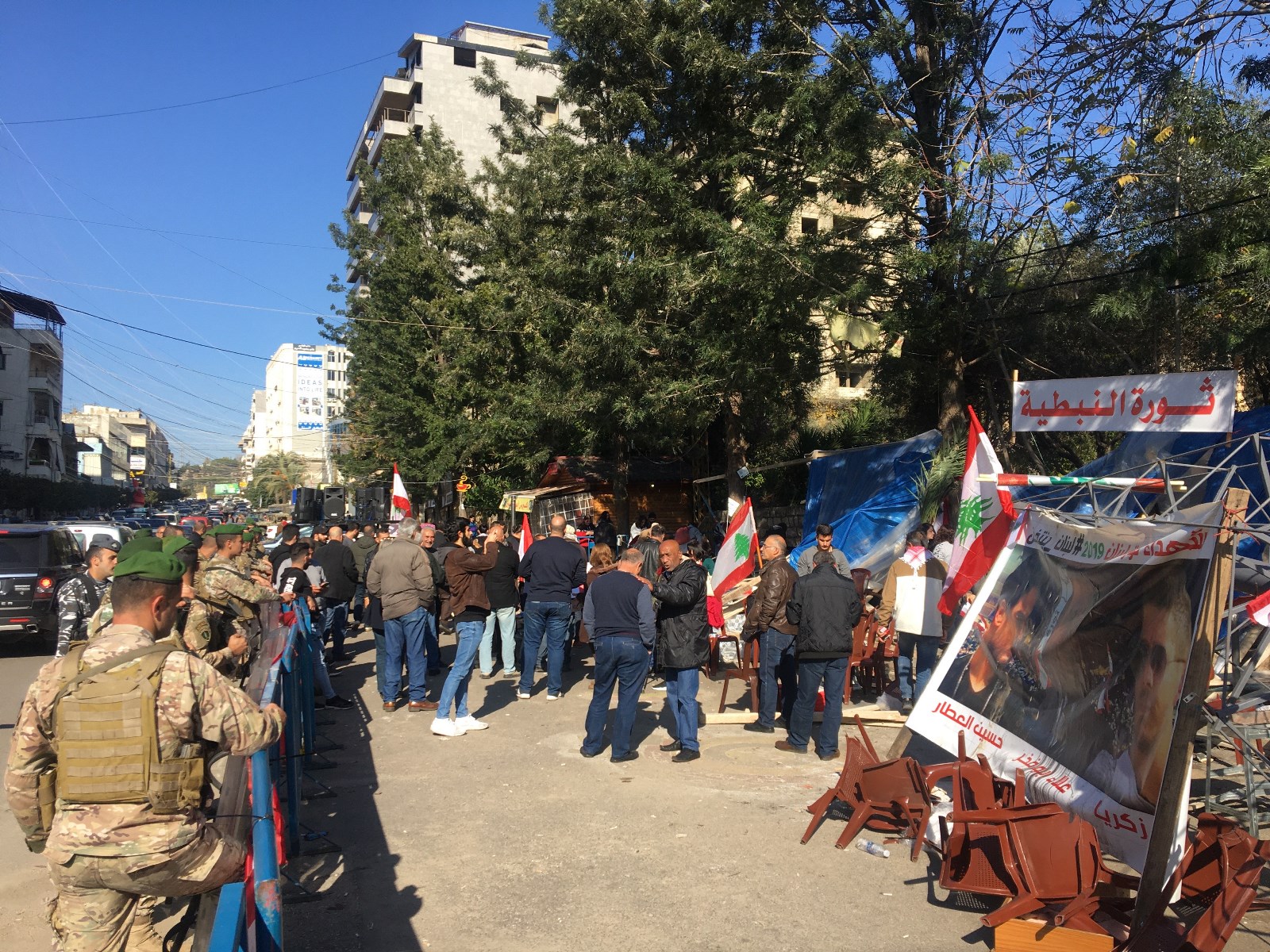 نظم معتصمون في النبطية وقفة احتجاجية على خلفية تحطيم خيمتهم بالقرب من السرايا الحكومية في النبطية، ورددوا الاغاني والشعارات الوطنية، مستنكرين ما حدث.