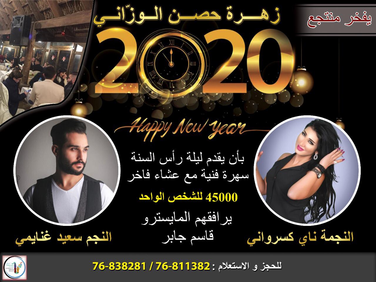 في هذه الاطار يقدّم منتجع زهرة الوزاني سهرة فنيّة رائعة، مع عشاء فاخر، يحييها النجمان ناي كسرواني وسعيد غنايمي، يرافقهما المايسترو قاسم جابر.