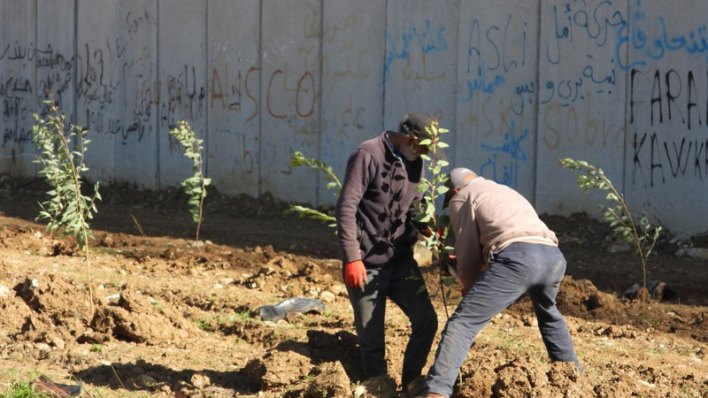 هناك في الجانب المقابل من الجدار الحدودي مع فلسطين المحتلة مستوطنون يقتاتون مع الخبز القلق، وفي الجانب اللبناني حياة ملؤها الأخضر. بمحاذاة الجدار الأسمنتي الذي شيده العدو خلف الخط الأزرق على طول حدود بلدة كفركلا الجنوبية، بدأت البلدية بحملة تشجير واسعة في الأرض الملاصقة.