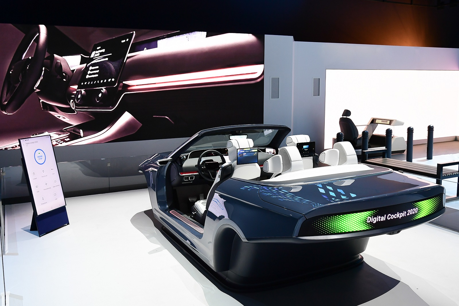 تعمل قمرة القيادة الرقمية 2020 على أساس نظام أندرويد للسيارات. ويتيح ذلك لمنصة إنترنت الأشياء SmartThings المدمجة من سامسونج العمل جنباً إلى جنب مع المساعد الافتراضي المتطور "بيكسبي في السيارة" لتعزيز الاتصال من خلال السماح للسيارة بالتواصل والتفاعل بشكل نشط مع السائق. على سبيل المثال، عندما يزور شخص ما منزلك، يكتشف بيكسبي الزائر عبر منصة SmartThings ويعلمك بزيارته. ليس ذلك فحسب ، بل يمكن لـ بيكسبي أيضاً تقديم اقتراحات بشأن تشغيل الأنوار والأجهزة المنزلية في منزلك وأنت في طريقك إلى المنزل.