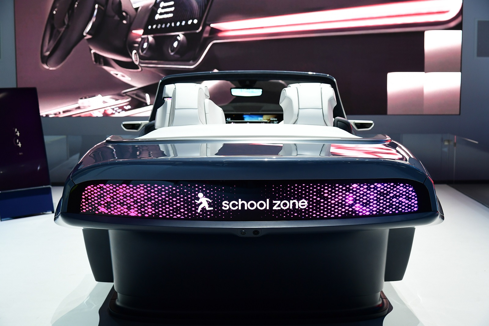 في الجزء الخلفي من السيارة، يتم استخدام مصابيح LED صغيرة على مصابيح الذيل الخارجية لتشكيل شاشة عرض خلفية مقاس 53.7 بوصة. ومع تقنية الاتصالات V2X (اتصال المركبة بكل شيء) وشاشة العرض، يمكن للمركبة مشاركة الرسائل وإبلاغ حالة السائق إلى أطراف خارج السيارة عند الحاجة. على سبيل المثال، قد تظهر الشاشة رسائل مثل "أعمال الطرق المقبلة" و"المشاة يقتربون" إضافة إلى تنبيهات أخرى.