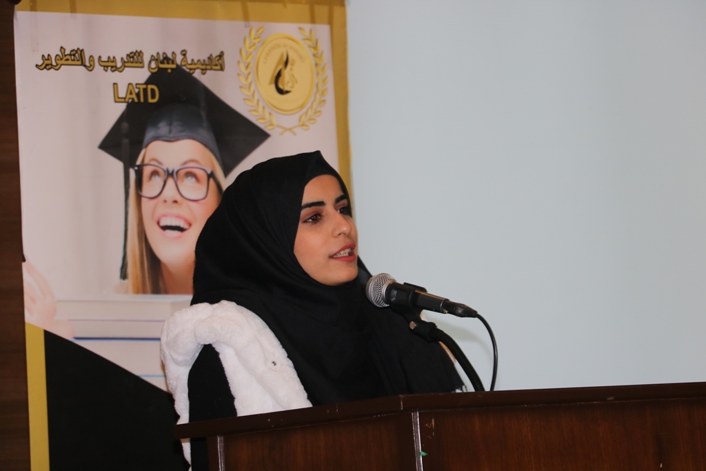 ثم ألقت كلمة المتخرجين الطالبة إكرام عزّام التي شكرت الأكاديمية على ما قدمته للخريجين خلال فترة الدورات التي التحقوا بها في الاختصاصات المختلفة.