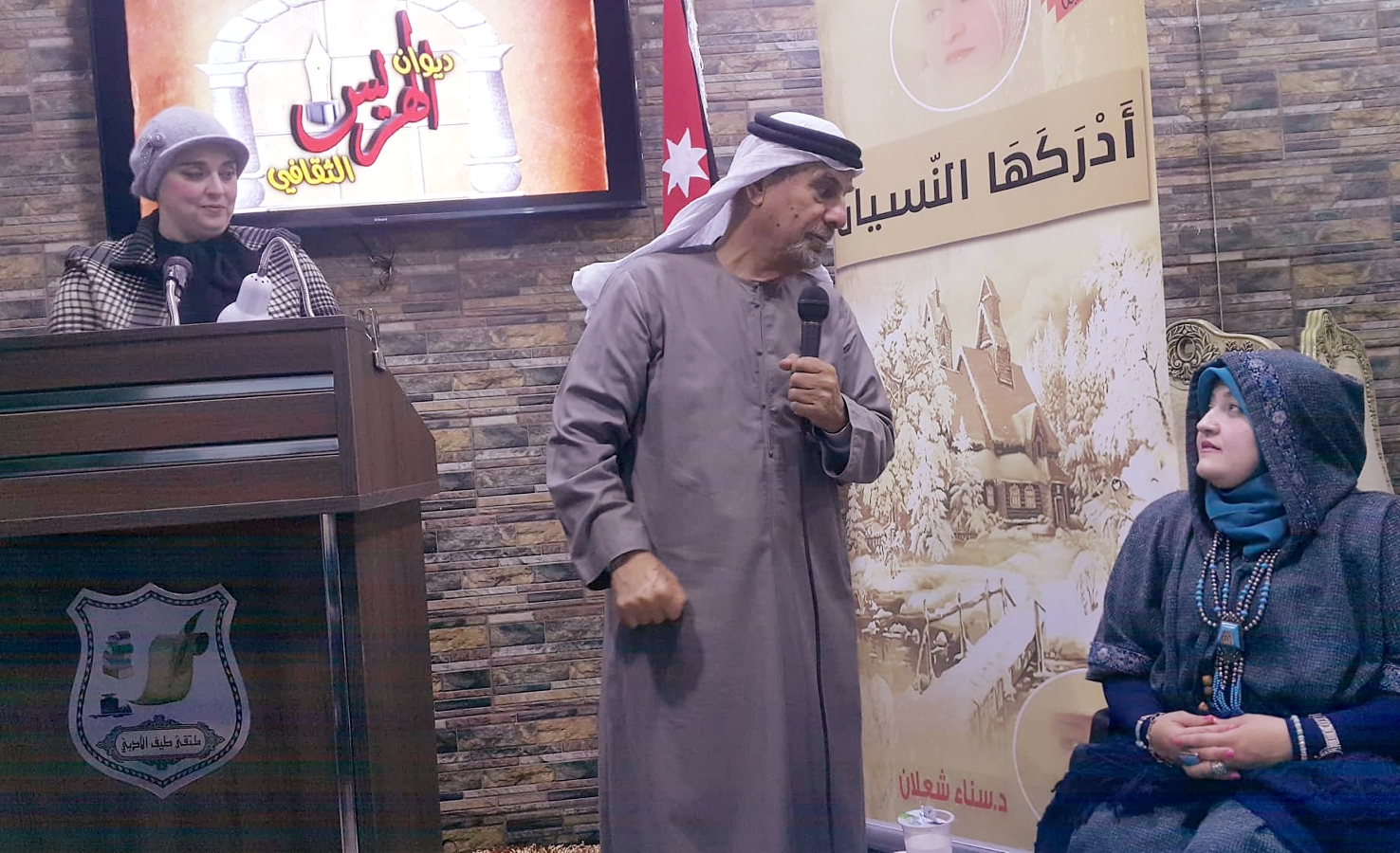 استضاف ديوان الهريس الثّقافيّ النّاقد العراقيّ عباس داخل حسن، والأديبة د. سناء الشّعلان في ندوة أدبيّة حول رواية "أدركها النّسيان"، وقد قدّمت الأديبة عنان محروس الأديبين الضّيفين؛ إذ طافت بلغة شعريّة رائقة في عوالم سيرتهما وأدبهما وأفكارهما، كما توقّفت عند الرّواية تقديماً وتعريفاً ورصداً لمواقفها وأحداثها وأفكارها، قائلة في معرض حديثها عن الشّعلان وعباس: "إنسانة يحقّ لروحها أن تسوّر الكون شغفاً وحبّاً وفرحاً، وهي الرّوائيّة د. سناء الشّعلان، وناقد بارع يقطف مماليك الحرف، وأديب تترجّل له الدّماثة صاغرة أمام سموّه، وهو الأديب عباس داخل حسن.