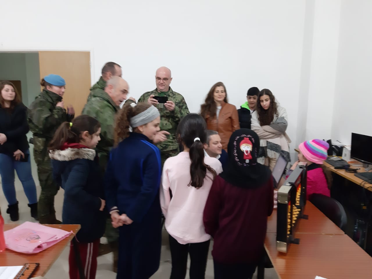 جرى ذلك بحضور النقيب لويس المسؤول الجديد في الشؤون المدنية، حيث تم عرض بعض الأنشطة من صف الحساب الذهني وصف الموسيقى حيث أبهرت مواهب الطلاب افراد الكتيبة على ان يتم الاتفاق لاحقاً على اقامة أنشطة تربوية وتثقيفية للطلاب بالتعاون مع الكتيبة الاسبانية.