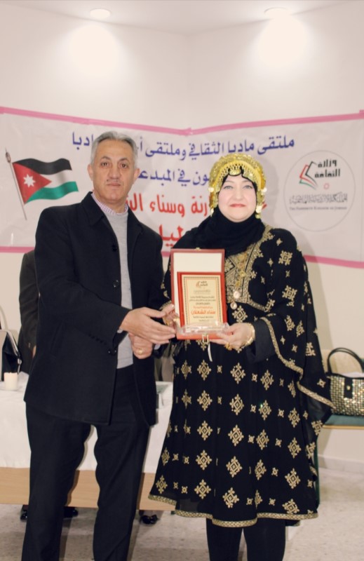 وجاء هذا التكريم للمبدعتين الشّعلان وحمارنه عن مجمل سيرتهما وإبداعهما الذي يمثّل صورة مشرقة للمرأة الأردنيّة الفذّة؛ وقد استعرض د. ماجد الرضاونة المصاروة رئيس ملتقى مأدبا الثّقافيّ مسيرة الأديبة د. سناء الشّعلان مستعرضاً منجزها الأكاديميّ والإبداعيّ والحقوقيّ والإنسانيّ والفكريّ، متوقّفاً عند الكثير من محطّات منجزها، وخصوصيّة إبداعها وفكرها ومشوارها، كما وجّه لها الكثير من الأسئلة حول تجربتها الإبداعيّة، وحيّاها بأبيات من نظمه قال فيها: