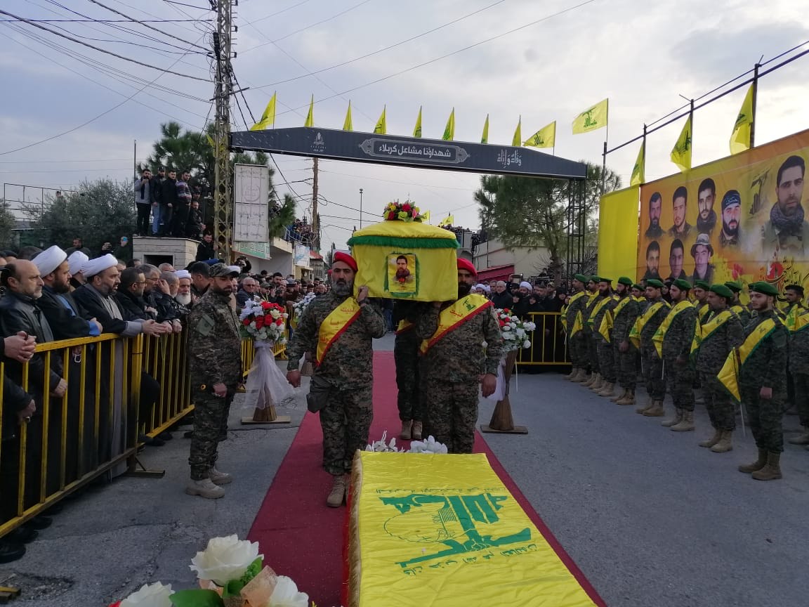 موكب التشييع انطلق من منزل الشهيد حيث حمل الجثمان الذي لف براية حزب الله على الاكف وتقدمه حملة الأكاليل والأعلام اللبنانية ورايات حزب الله وصور لقادة وشهداء في المقاومة اضافة الى صورة عملاقة للشهيد ، وجاب الموكب شوارع دير الزهراني وشارك فيه رئيس كتلة الوفاء للمقاومة النائب محمد رعد ومسؤول منطقة الجنوب في حزب الله علي ضعون وشخصيات وعلماء دين ،وردد خلاله المشيعون هتافات "لبيك يا زينب " واللطميات الحسينية ، وصولا الى باحة النادي الحسيني حيث أقيمت للشهيد مراسم تكريمية خاصة عزفت خلالها الفرقة الموسيقية في كشافة الامام المهدي لحن الشهادة ، ثم ادت ثلة من المجاهدين قسم الولاء للامين العام لحزب الله السيد حسن نصرالله ، ثم ادى الشيخ عبد الكريم عبيد الصلاة على الجثمان ليوارى الثرى في روضة البلدة