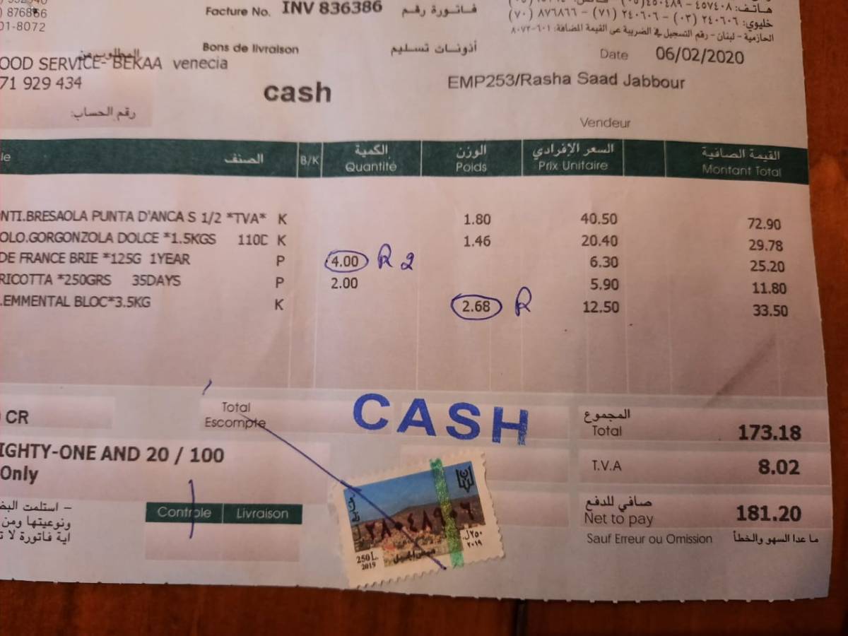 وبعد أن رزقه الله طفلاً في آب سنة 2018 ازدادت مسؤولياته وتراجع مدخوله. أمّا سنة 2019 فيعتبرها "أسوأ السنوات وخاصة صيفها، الحمدلله أنني أمتلك منزلاً إلى جانب أهلي، ما خفّف عني مصروف الإيجار الزائد وبعض المصاريف، لكن ما زاد الطين بلّة موضوع ارتفاع سعر صرف الدولار وارتفاع الأسعار بشكل جنوني". يبرز وسام فاتورة بأسعار المواد التي يستخدمها في تحضير المأكولات والتي توضح حجم المصاريف التي لا تقابلها أي أرباح. ويضيف البنا أنّ "الأسعار ازدادت بشكل هستيري. فكيلو الخيار كان بـ1500ل.ل، وأصبح بـ3000ل.ل وكذلك الخضر على أنواعها، إلى جانب أنواع الأجبان التي لا أستطيع الاستغناء عنها والتي يزيد سعرها يومياً وفقاً لسعر الصرف كما أنني لا أستطيع زيادة اسعار أطباقي، فكنت أربح 25% من قيمة الصحن، اليوم نسبة ربحي هي 0% ونسبة الزبائن تدنت حتى الـ 90%".