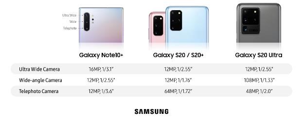 • مستشعر 48 ميجابيكسل: المستشعر الموجود في هاتف S20 Ultra عبارة عن مستشعر 48 ميجابيكسل يقوم بالتبديل بين تقنيتي tetra-binning و re-mosaicوفقاً لظروف التصوير، مثل مستوى السطوع أو نسبة التكبير / التصغير. وتجمع تقنية Tetra-binning بين 4 بيكسلات في بيكسل واحد، مما ينتج عنه صورة بدقة 12 ميجابيكسل مع بيكسلات أكبر. وعندما يتم إعادة ترتيب وحدات بيكسل في نمط RGB باستخدام تقنية re-mosaic، يعمل كل بيكسل بشكل مستقل لتوفير تقريب بصري يصل إلى 10 أضعاف.