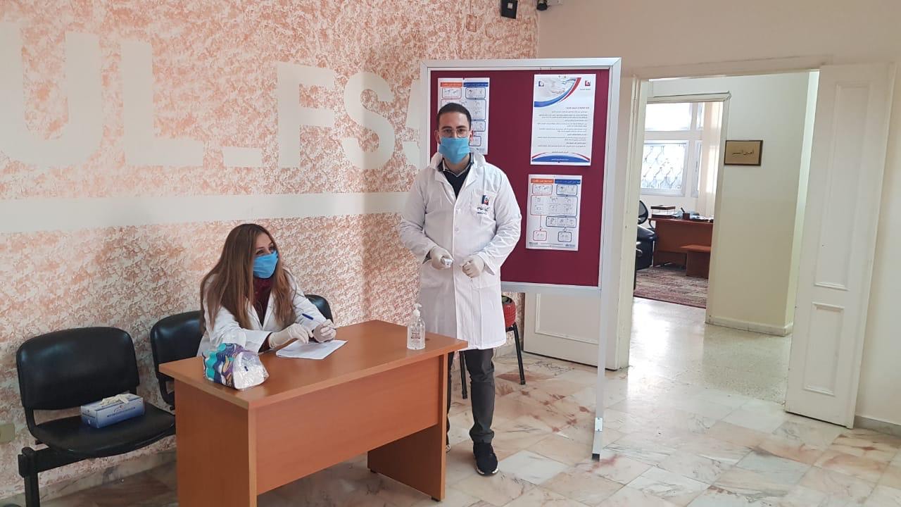 وتنفيذاً لتعاميم رئاسة الجامعة اللبنانية بشأن اتخاذ تدابير للوقاية من انتشار فيروس كورونا، بادرت كلية العلوم الفرع-الخامس في النبطية الى تجهيز وحدة خاصة من موظفي الكلية مهمتها قياس حرارة جميع العاملين في الفرع من موظفين واداريين واساتذة بالإضافة الى الزائرين و تعقيم آلة البصم وتعقيم اليدين قبل وبعد البصم، والاشراف على تعقيم المكاتب والحمامات والمختبرات وقاعات التدريس وذلك ضمن الامكانات المتاحة.