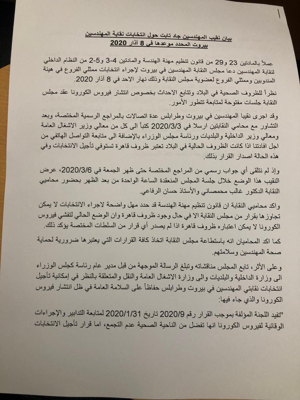 لم ينسحب المهندس فادي غريب من انتخابات نقابة المهندسين التي كانت مقررة يوم غد الأحد، إنما تم تأجيلها بعد أن أعلن نقيب المهندسين جاد تابت تأجيل انتخابات ممثلي الفروع في هيئة المندوبين وممثلي الفروع لعضوية مجلس النقابة بسبب الظروف الصحية المتعلقة بالكورونا.