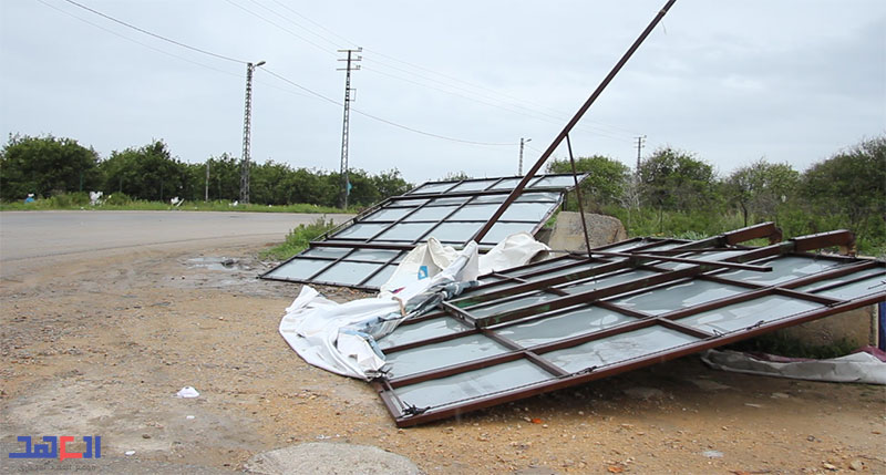 إلى المنطقة الواقعة شمال مجرى نهر الليطاني في القاسمية، وتحديداً في بلدتي ارزي والخرايب والتي نشأت فيها خلال السنوات الأخيرة الزراعات المحمية والبيوت البلاستيكية والخيم على مساحة تتجاوز الألفي دونم. هنا لا يمكن لعابري المنطقة إلا أن يترحموا على أرزاق كانت ستؤمن عائدات مالية تسد ثغرة في موازين عجز وقع فيه المزارعون نتيجة للارتفاع المستجد على أسعار المواد الأولية لزراعاتهم. فيلفت المهندس الزراعي المشرف على هذه الزراعات حسن غزالة إلى أن ضررًا كبيرًا لحق بزراعات البندورة والخيار والفريز التي تزرع في مشاريعهم، إضافة إلى مواسم البطيخ والشمام التي تزرع شتولها من الآن في أنفاق أتلفتها الرياح، مشدداً على أن نتائج الكارثة هناك تحتاج لبعض الوقت ليجري احصاؤها والوقوف عند نتائجها، وهنا لا تتوقف الخسائر عند أعمدة الحديد وآلاف الأمتار من النايلون الذي تحمله بل عند المواسم التي كانت ستغذي لبنان لأشهر.
