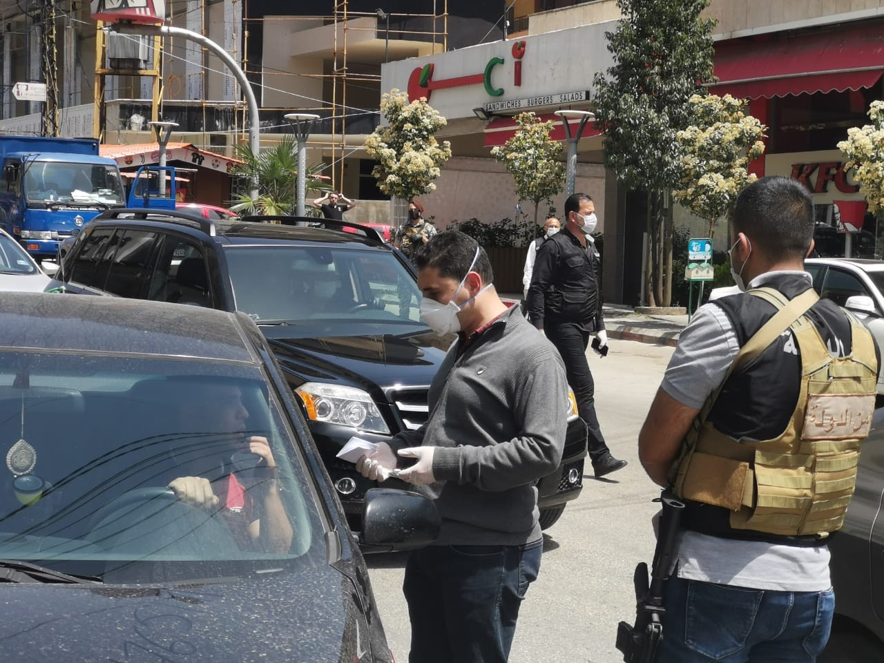 تنفيذا لقرار مجلس الوزراء بالتعبئة العامة اقامت المديرية العامة لامن الدولة مكتب النبطية الاقليمي حواجز على مداخل مدينة النبطية جرى خلالهم التشديد على تنفيذ قواعد السلامة العامة والوقاية لدى المارة والتشدد بسير السيارات ذات الارقام المعتمدة يوميا حسب التعميم الصادر من وزراة الداخلية والبلديات