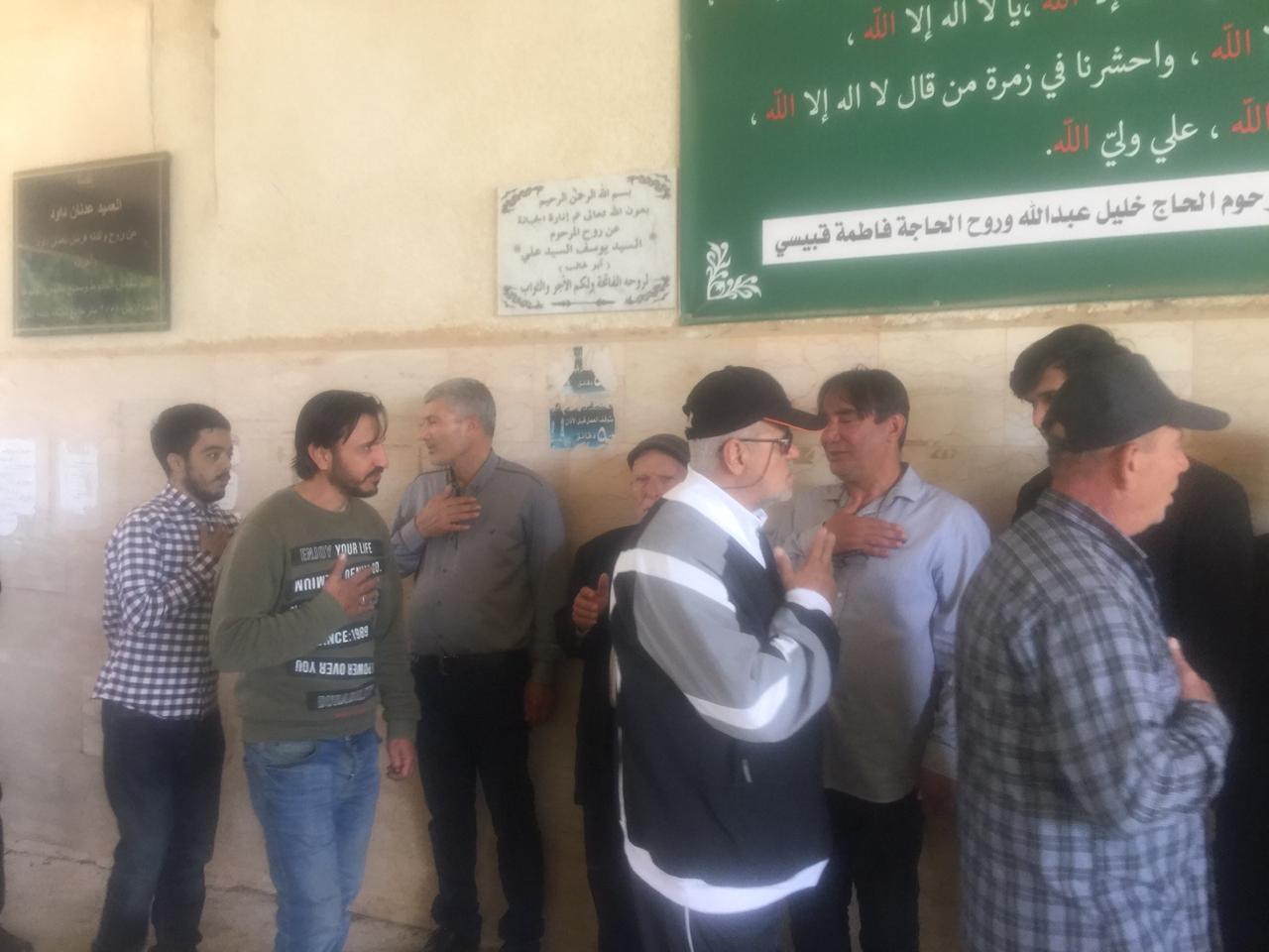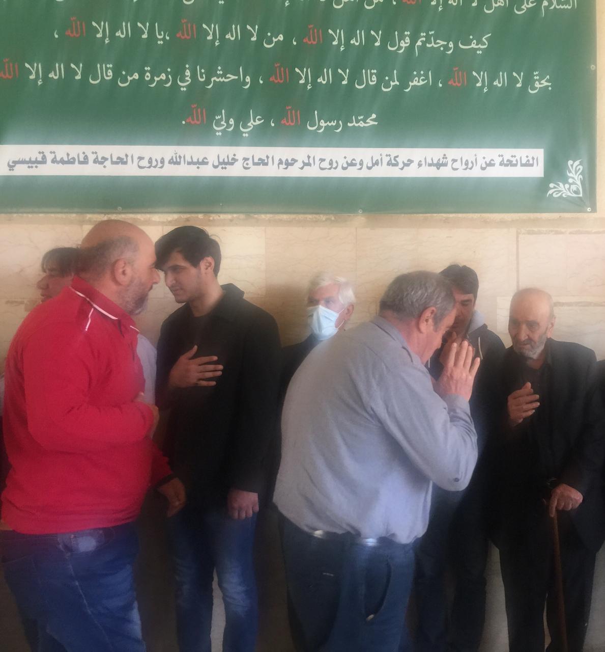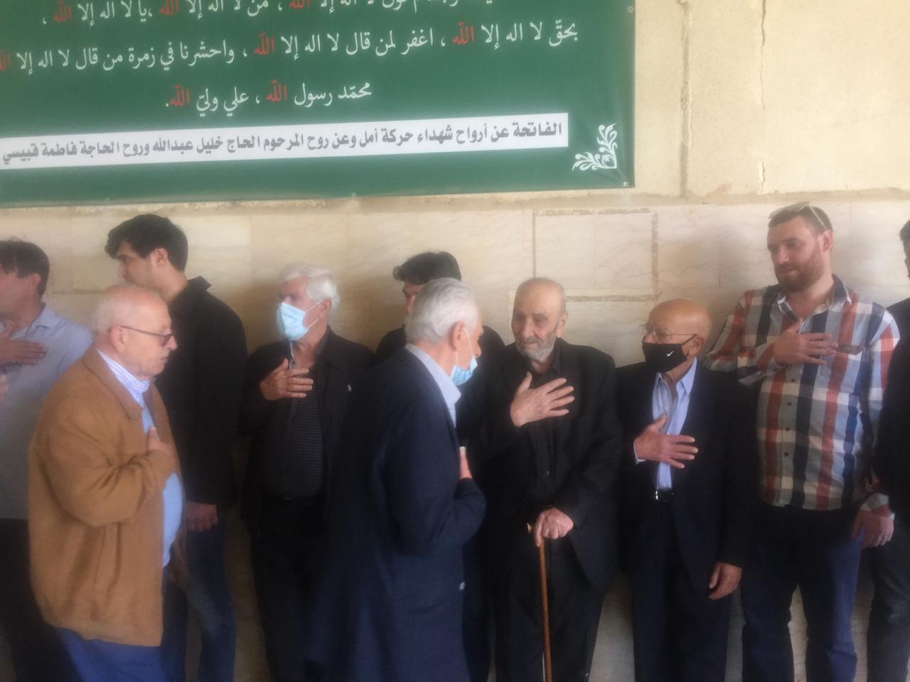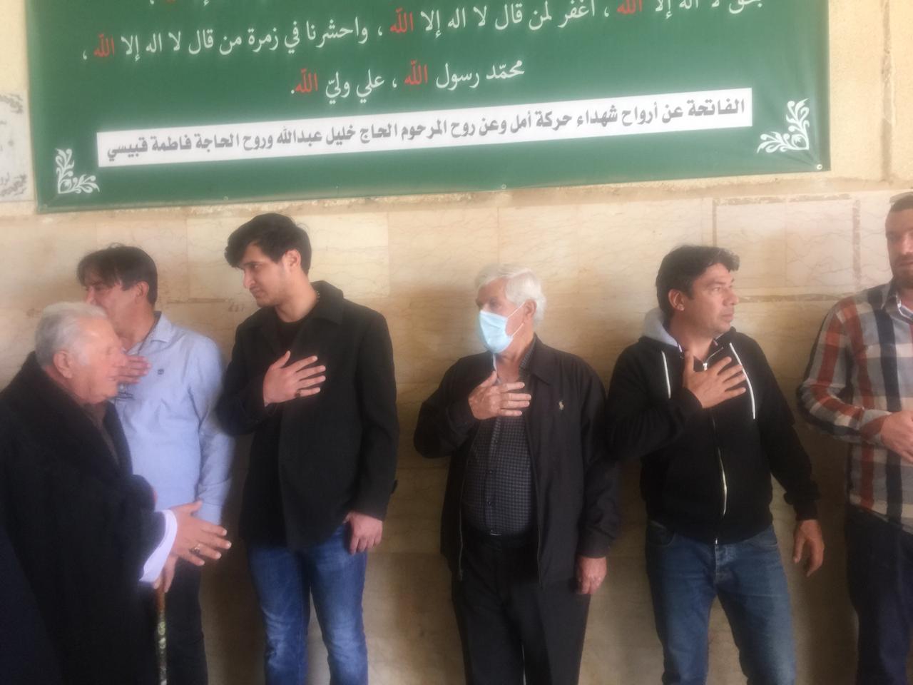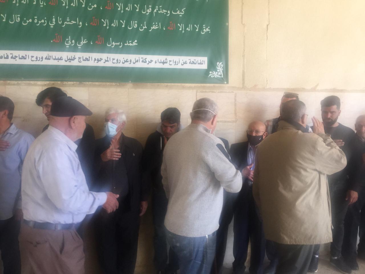 وبعد ذلك اصطف الأهل لتقبل واجبات العزاء يتقدمهم نجله (حسن)، وشقيقه مهندس المساحة (علي نصرات)، وعمّاهُ، ثم خاله الحاج أبو خليل، وأصهرة الفقيد، وسائر الأقارب من أبناء أخواته وأعمامه وعماته، وخالته، وأخواله. ثم تقدم بالعزاء جموع أهالي مدنية الخيام من ضمنهم الفعاليات العائلية والاجتماعية، وكوكبة رائدة من من جيل معلمي الخيام في الخمسين سنة الأخيرة، ومخاتير البلدة، فكان عزاء شعبيا حافلا بمحبيّ الفقيد الغالي على قلوب كل من حضر التشييع، والذي خلا من المظاهر الرسمية المصطنعة، والهيئات الحزبية والبلدية (ما عدا الأقارب المباشرين).