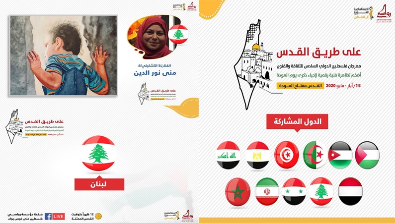 شارك ملتقى الألوان الفني في فعاليات مهرجان فلسطين الدولي السادس "على طريق القدس" ضمن أضخم تظاهرة فنية لإحياء الذكرى الـ72 للنكبة الفلسطينية رقمياً، بسبب ظروف جائحة كورونا.