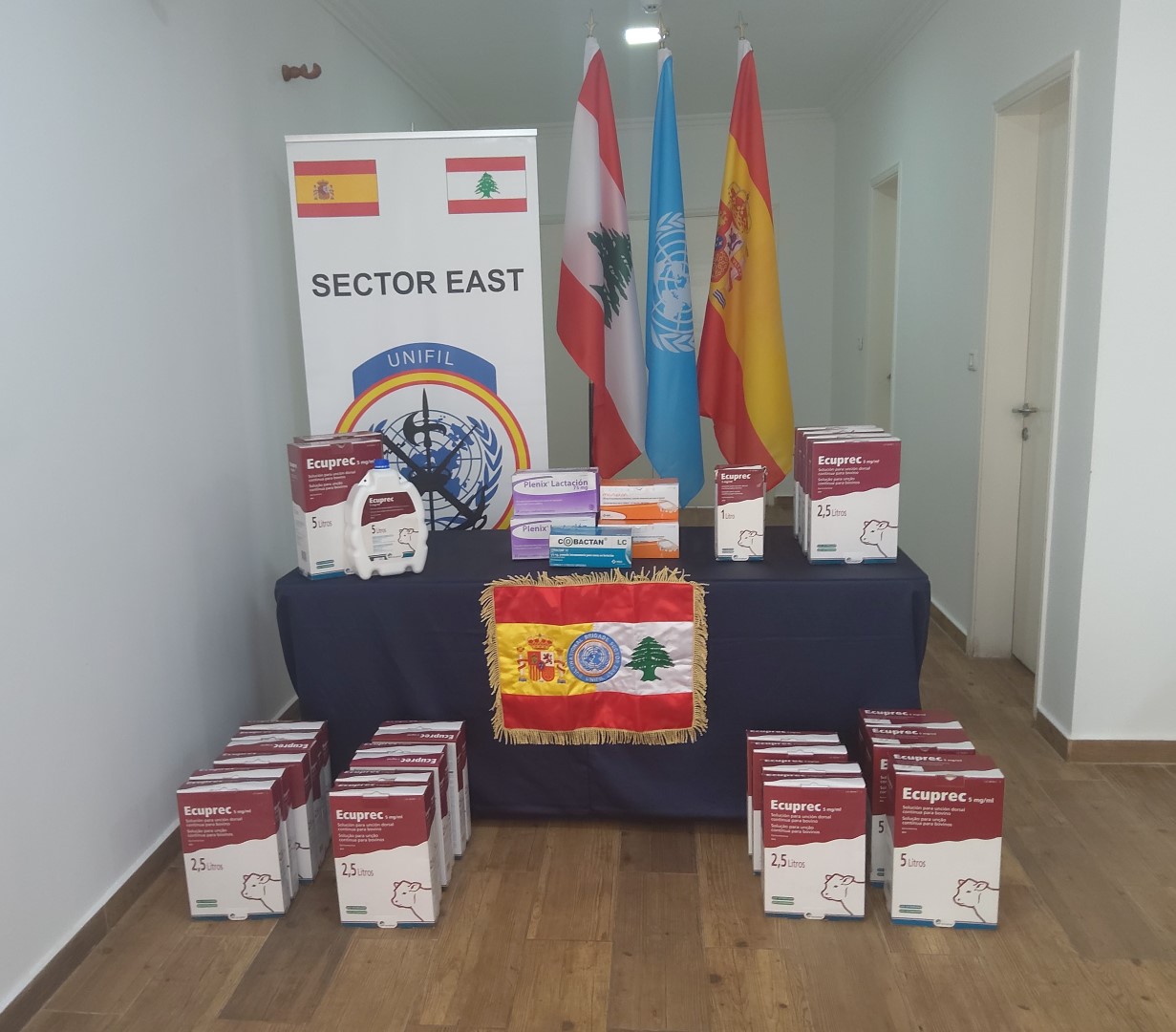 قدّمت الكتيبة الاسبانية، التابعة لقوات اليونيفيل، أكثر من سبعة أنواع من الأدوية البيطرية إلى اتحاد بلديات العرقوب واتحاد بلديات جبل عامل في جنوب لبنان ، والأدوية المقدمة هي أدوية بيطرية وقائية واحتياطية للثروة الحيوانية ، تشمل كبسولات التخلص من الديدان ، ومضاد للحشرات،أدوية لمكافحة الطفيليات الخارجية مثل القراد والبراغيث، المقويات الهضمية، المكملات المعدنية ومكملات الأعلاف.