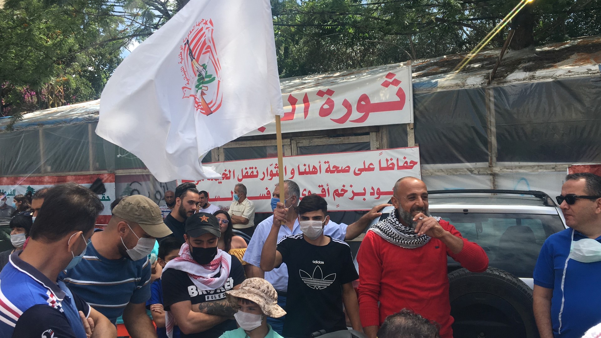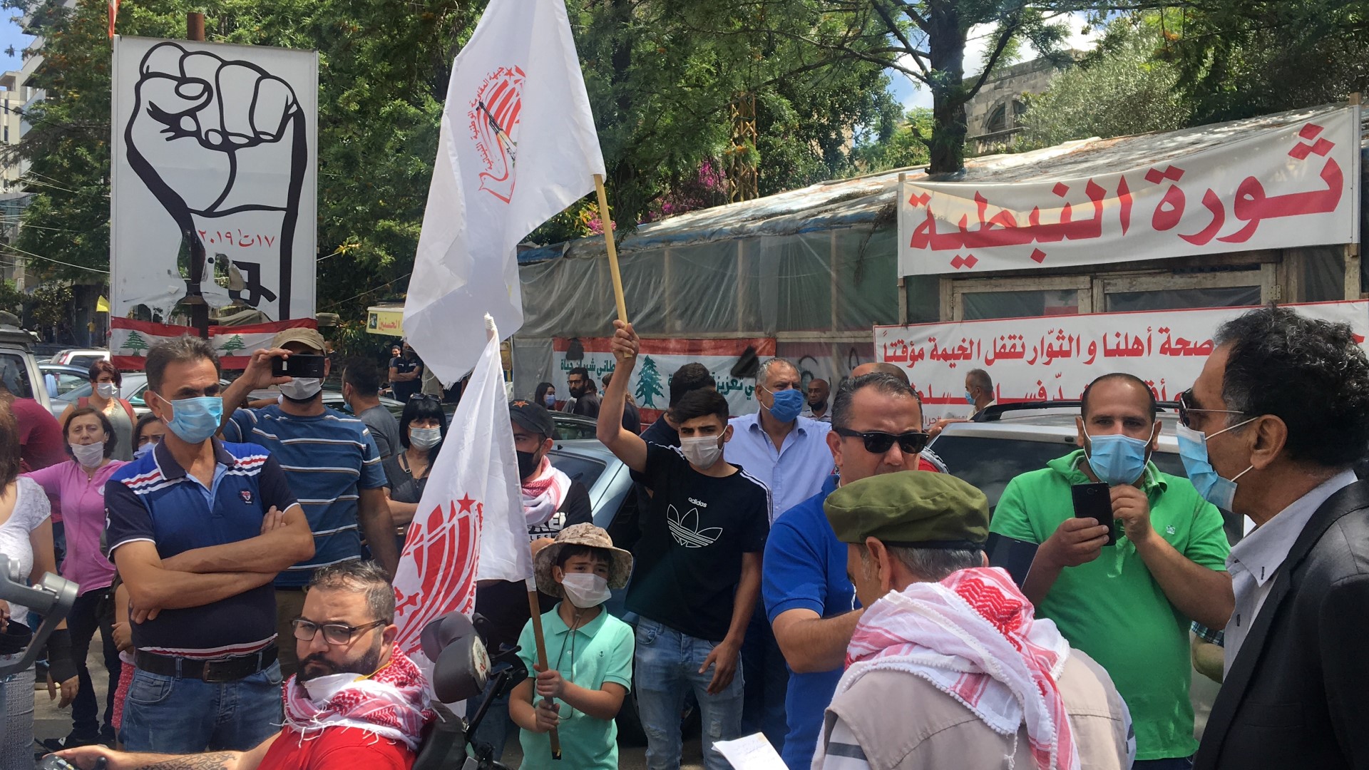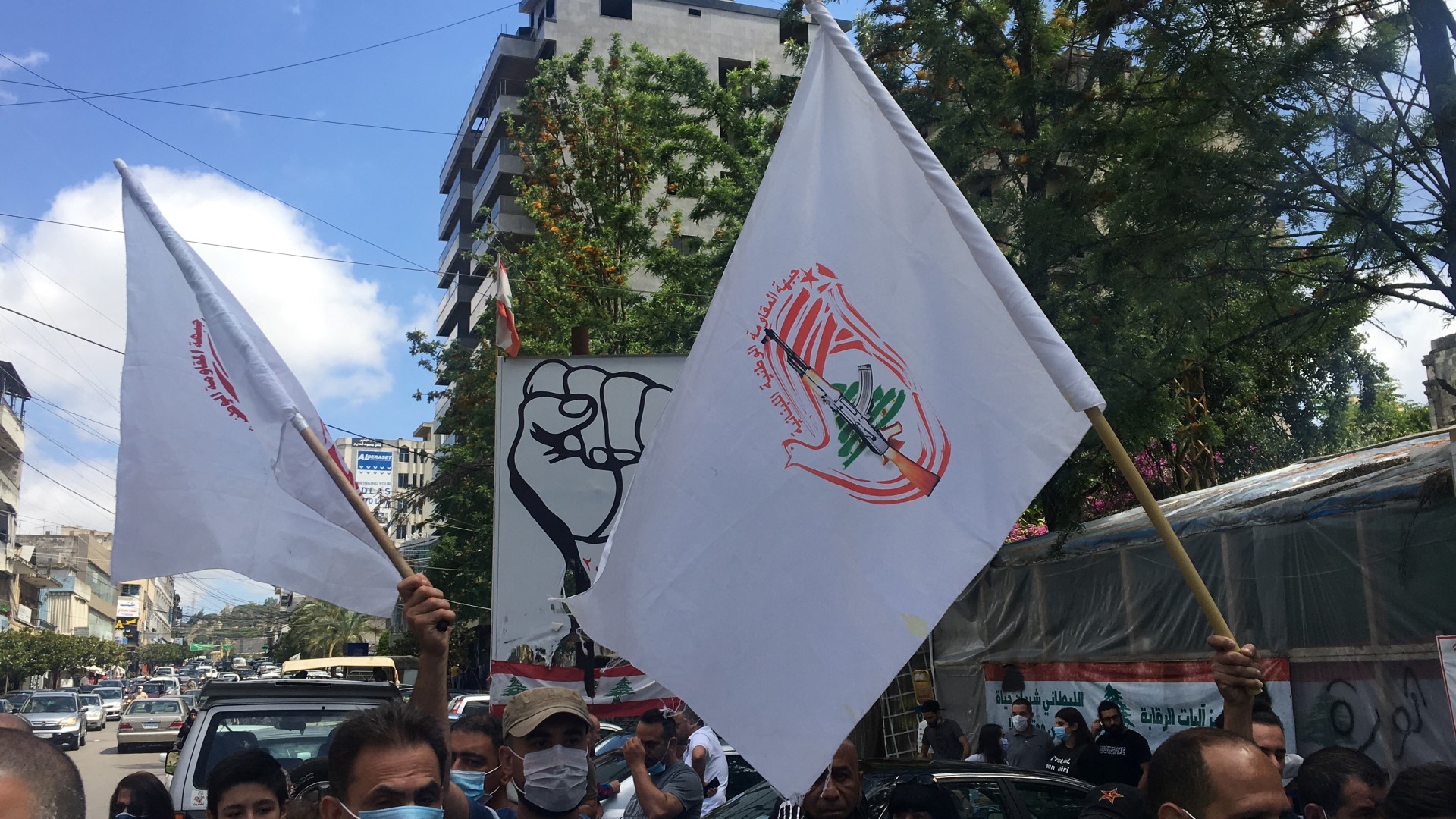 وحمل المحتجون اعلام جبهة المقاومة اللبنانية اضافة الى يافطات كتب على بعضها العفو عن العملاء اغتيال ثان لشهداء الوطن والمقاومة ، وصلتم الى السلطة بفضل العفو عن مجرمي الحرب الاهلية ، الخيانة والعمالة ليست وجهة نظر "، وتحدث عضو اللجنة المركزية للحزب الشيوعي اللبناني الدكتور علي الحاج علي فقال لا أتفاجأ باقرار هكذا نوع من القرارات ومنها قرار عودة العملاء من اسرائيل وكأسير سابق سوف نتعامل مع العملاء كما تعاملنا مع العدو الصهيوني من خلال المقاومة والتصدي لهم لان من تنكر لشعبه وبلده ووطنه ليس من الصعب عليه ان يتنكر للمناضلين والشهداء الذين قدموا دمائهم وضحوا لتحرير الارض ،حذاري ثم حذاري اقرار هذا القانون اليوم لاننا سنتعامل معه كما تعاملنا مع الكيان الصهيوني والجيش الاسرائيلي خلال الاحتلال للجنوب وما قبل التحرير ورصاصات المقاومة الوطنية ستكون لهم بالمرصاد ، عيب ثم عيب على مجلس النوابي وعلى هذه الطبقة السياسية ان تقر هكذا نوع من القوانين .