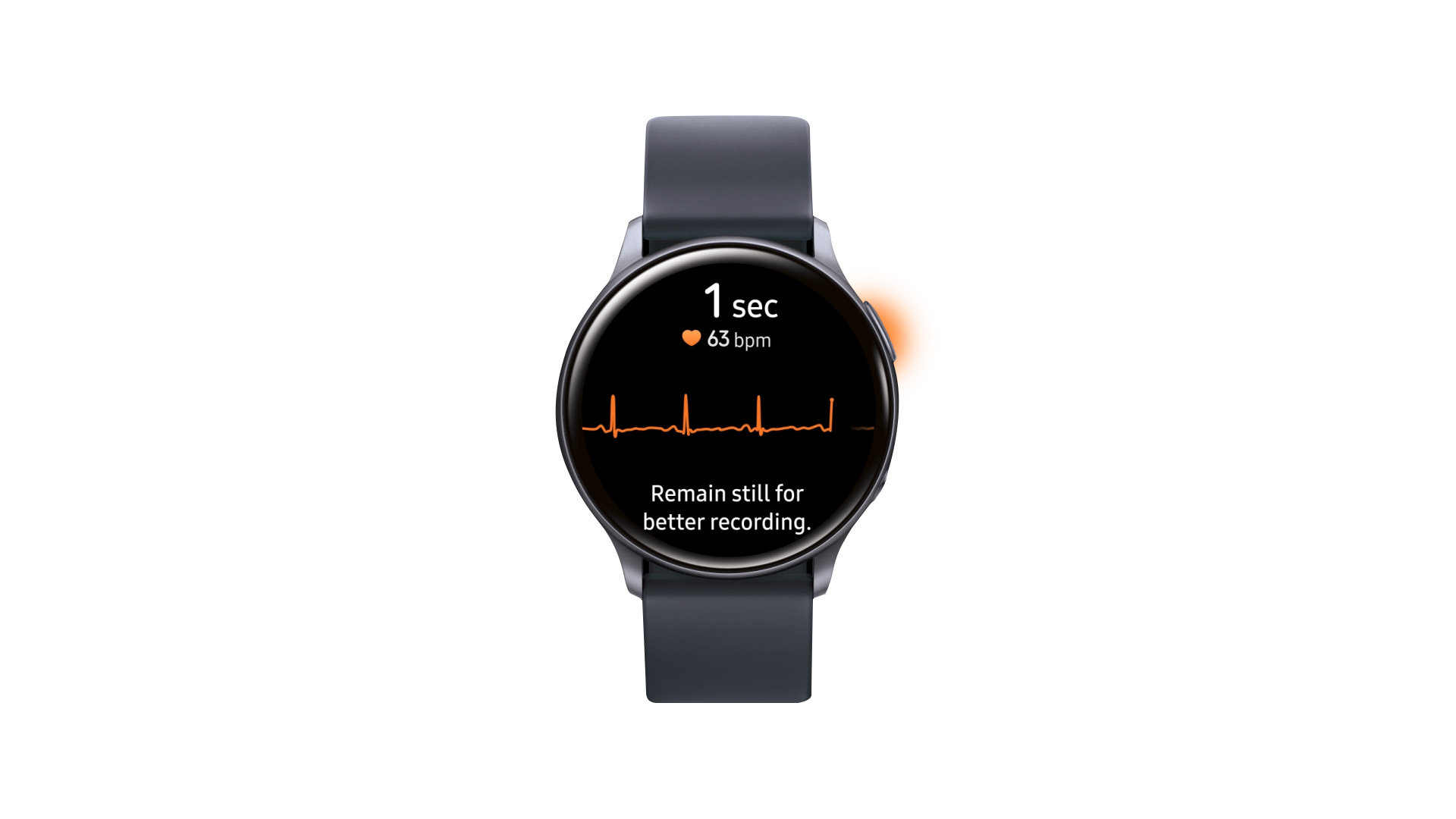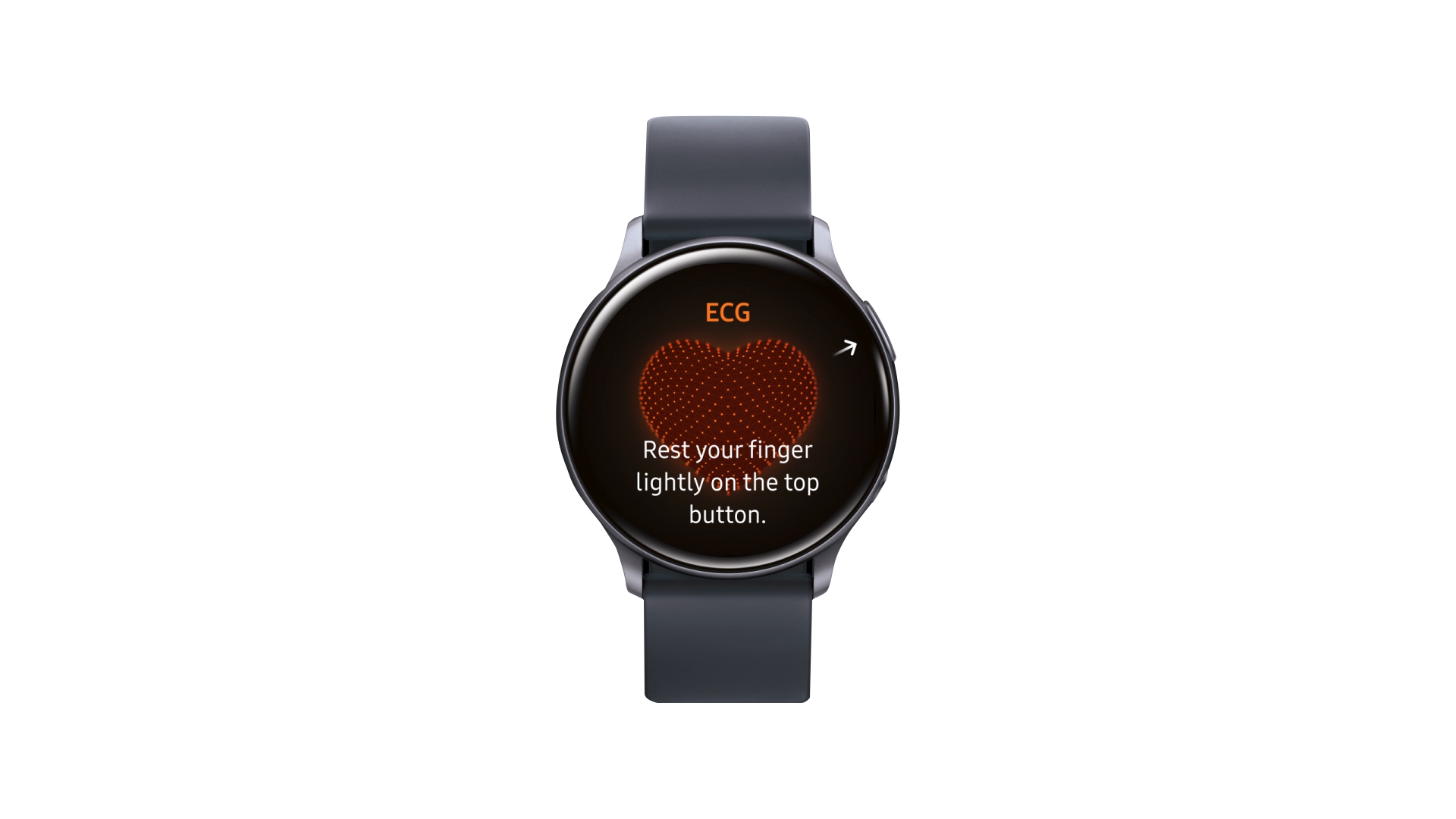 ويمكن إجراء التخطيط الكهربائي للقلب عبر تحليل نشاطه الكهربائي، باستخدام مستشعر ECG في ساعةGalaxy Watch Active2 . ويتم ذلك عبر تشغيل تطبيق Samsung Health Monitor والجلوس بشكل مريح، وربط الساعة بإحكام على المعصم. ومن ثم، وضع الساعة على سطح مستوٍ، والضغط بخفة على الزر العلوي فيGalaxy Watch Active2، باستخدام أحد أصابع اليد الأخرى لمدة 30 ثانية. يتم بعد ذلك قياس معدل ضربات القلب ومدى انتظامها، وتصنيفها كـSinus Rhythm (ضربات قلب طبيعية ومنتظمة) أو AFib ( ما يعني بأن نبضات القلب غير منتظمة) .