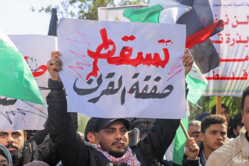 وبالتأكيد تبقى تصفية قضية فلسطين هي الهدف، والغاية من هذه الصفقة، والمدخل من اجل ترسيخ التجزئة وتعزيز مشاريع التفتيت في المنطقة، وهو ما يتطلب تعزيز التوجه المبارك لتجاوز الانقسام المدمر للمشروع الوطني الفلسطيني، وتوحيد الطاقات والجهود الفلسطينية لاطلاق انتفاضة كبرى لن تؤدي الى سقوط صفقة القرن ومخرجاتها فقط، بل تؤدي الى دحر الاحتلال عن الأرض الفلسطينية المحتلة وعاصمتها القدس.