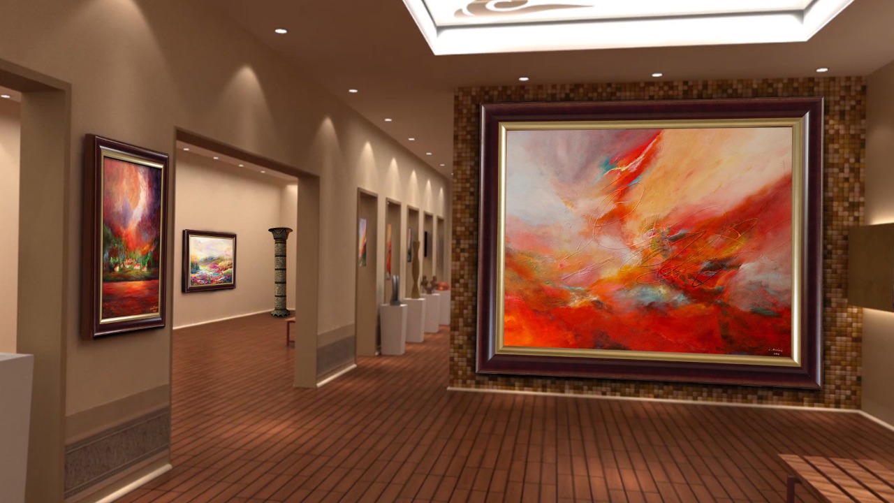واضافت"احببت ان أعطي طاقة ايجابية في زمن الأزمات والسلبيات وأمنح المشاهد فرصة مشاهدة الاعمال وكأنه يزور معرضا حقيقيا" .
