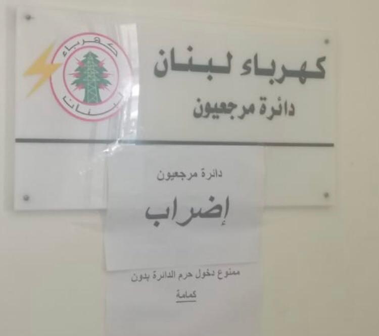 نفذ العمال المياومون في مؤسسة كهرباء لبنان اليوم اضراباً تحذيرياً في دائرة مرجعيون احتجاجاً على قرار وزير الطاقة والمياه ريمون غجر بالتمديد لهم والاستعانة بخدماتهم لحين ملء الشواغر في المؤسسة،وعدم اقرار تثبيتهم في مؤسسة كهرباء لبنان، حيث قاموا بإقفال ابواب المركز مطالبين المعنيين بتثبيتهم عن طريق مجلس الخدمة المدنية.
