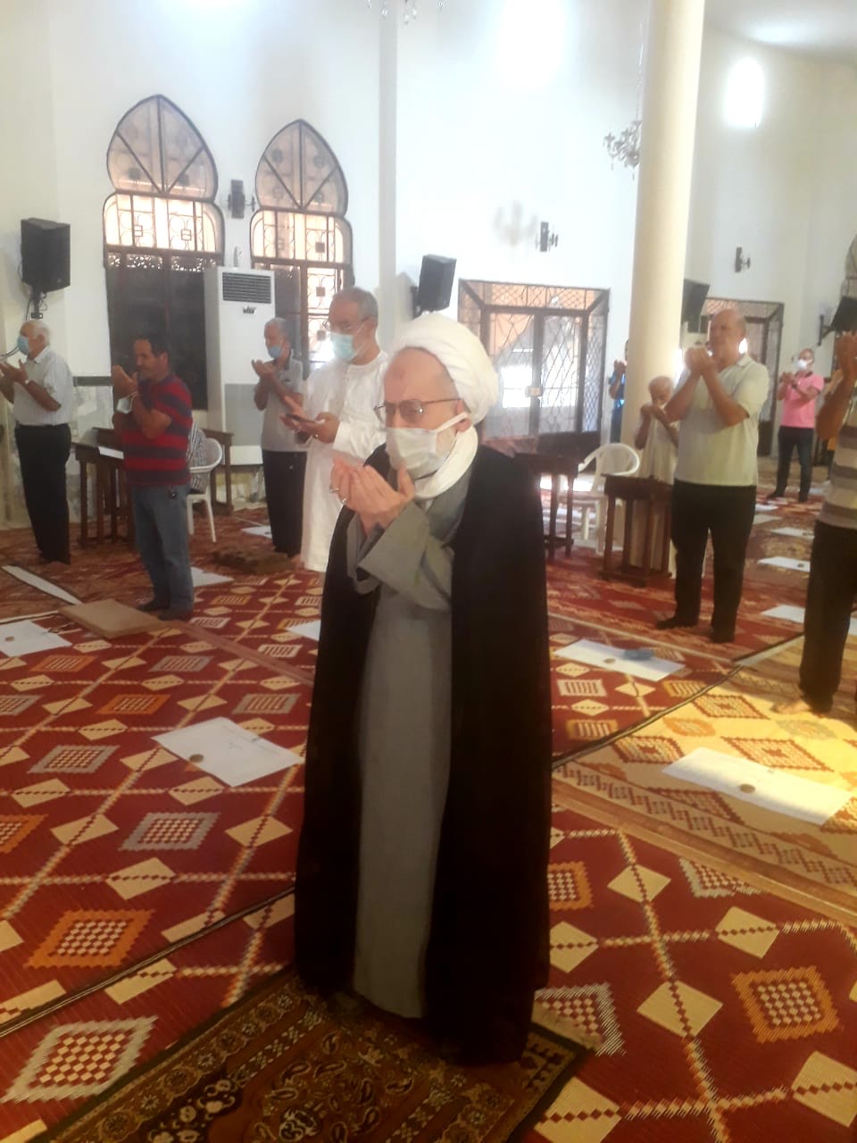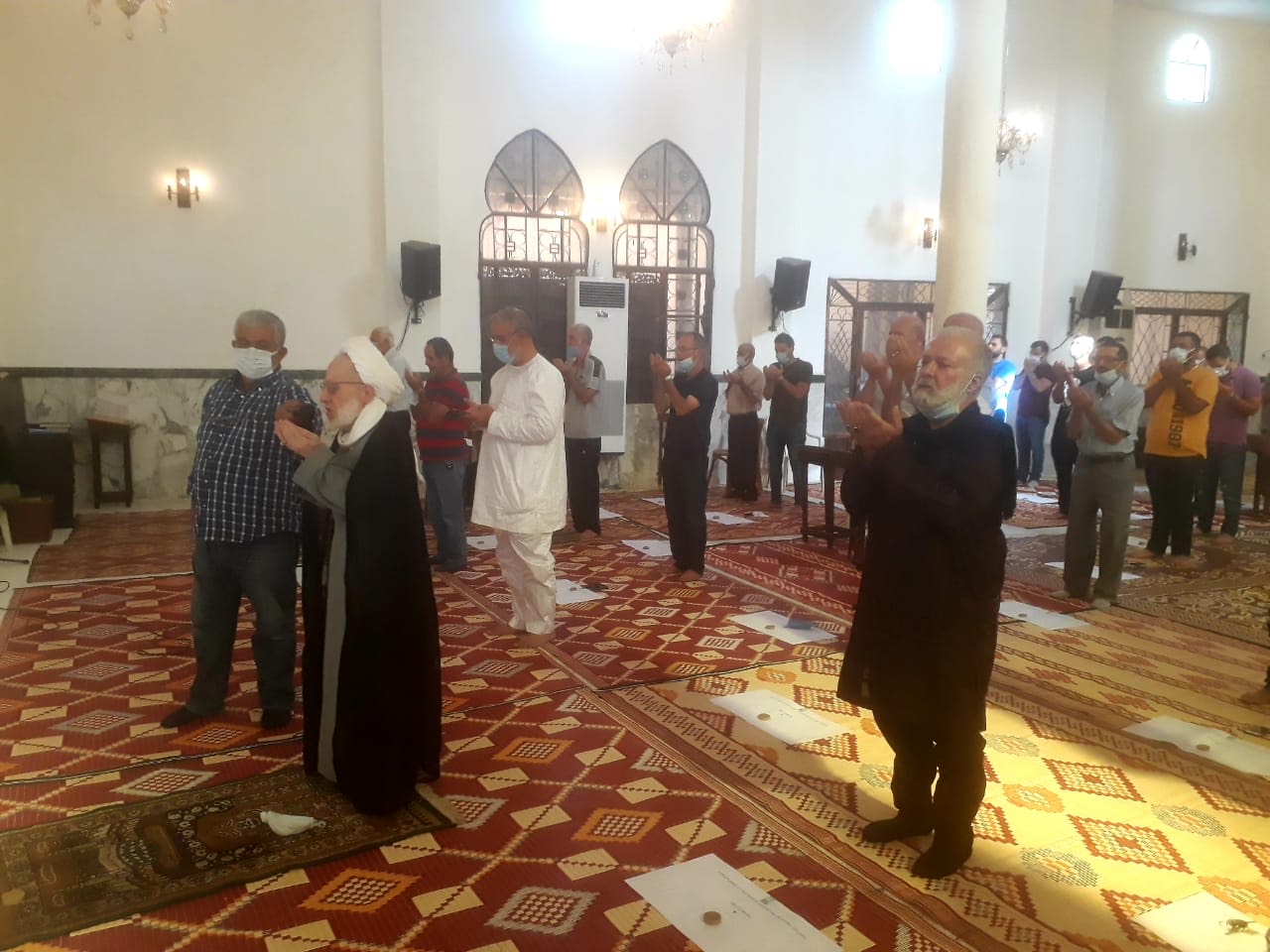 اقام امام النبطية الشيخ عبد الحسين صادق صلاة العيد في المسجد الكبير في المدينة بطريقة المتابعة مع تباعد بين المصلين واجراءات وقائية مشددة.