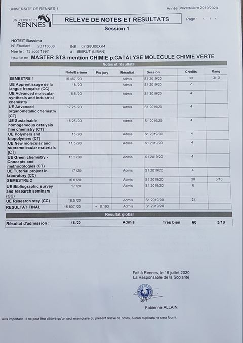 نالت الطالبة " باسمة محمد حطيط" ، إبنة بلدة الدوير الجنوبية، شهادة الدكتوراه في الكيمياء - ماستر 2، بدرجة جيد جداً من جامعة Rennes الفرنسية.