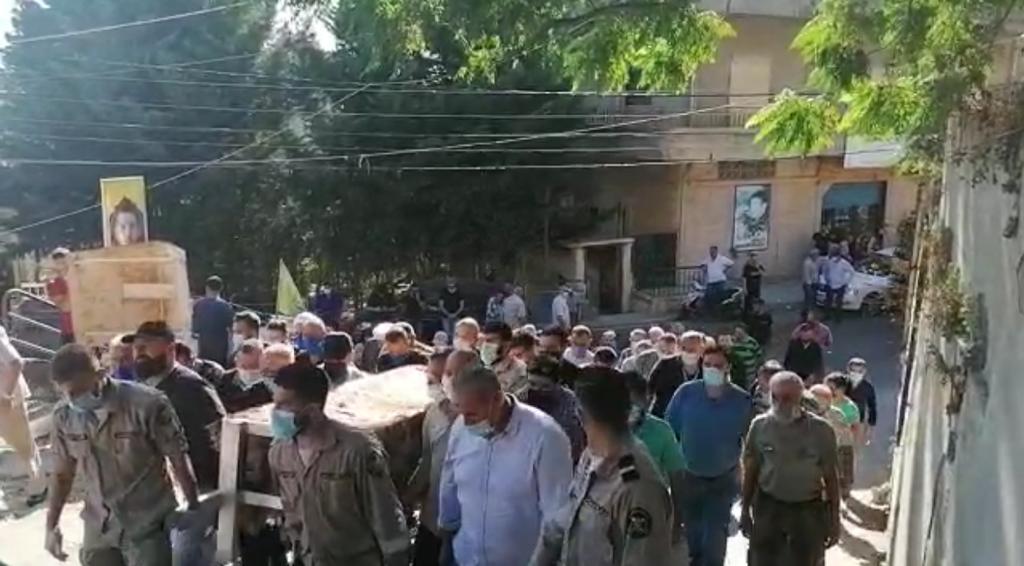وتقدم موكب التشييع الذي انطلق من منزل ذوي الشهيد حملة الاكاليل وسيارات الاسعاف، وشارك فيه ابناء البلدة ، باتجاه الجبانة حيث أم الصلاة عليه الشيخ محمد أيوب ليوارى بعدها الثرى في روضة البلدة.