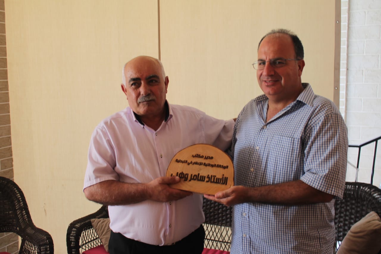 ثم سلم داود درعا تقديرية للزميل وهبي عبارة عن منحوتة من زيتون يحمر.