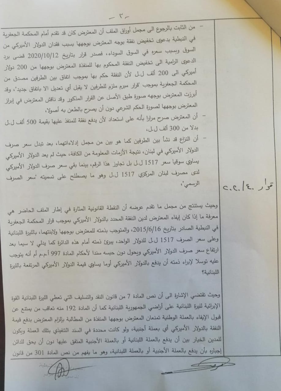 ومطالبه السابقة، وأضاف أنّه على استعداد لزيادة النفقة إلى 500 ألف ل.ل. في